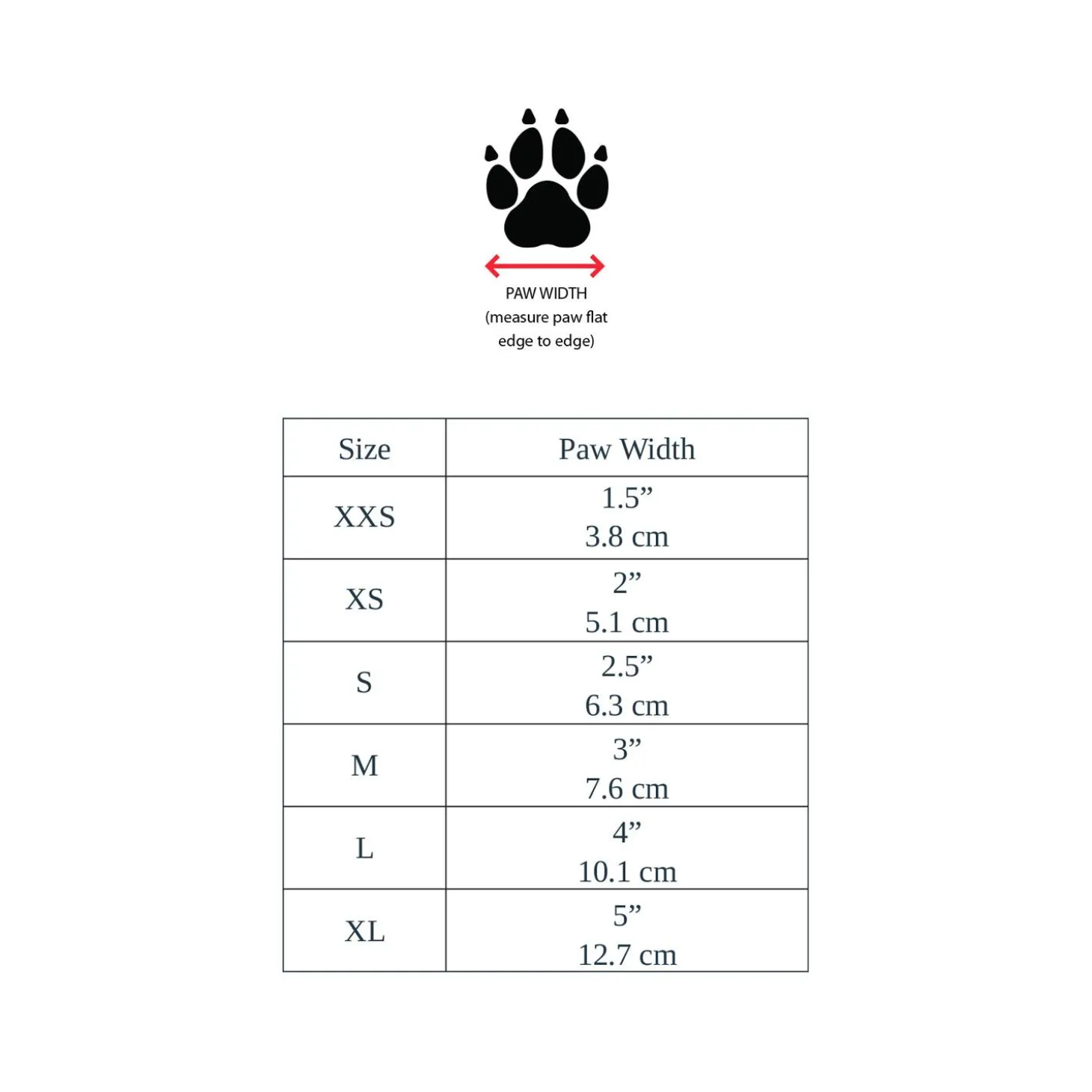 | Size | Paw Width |