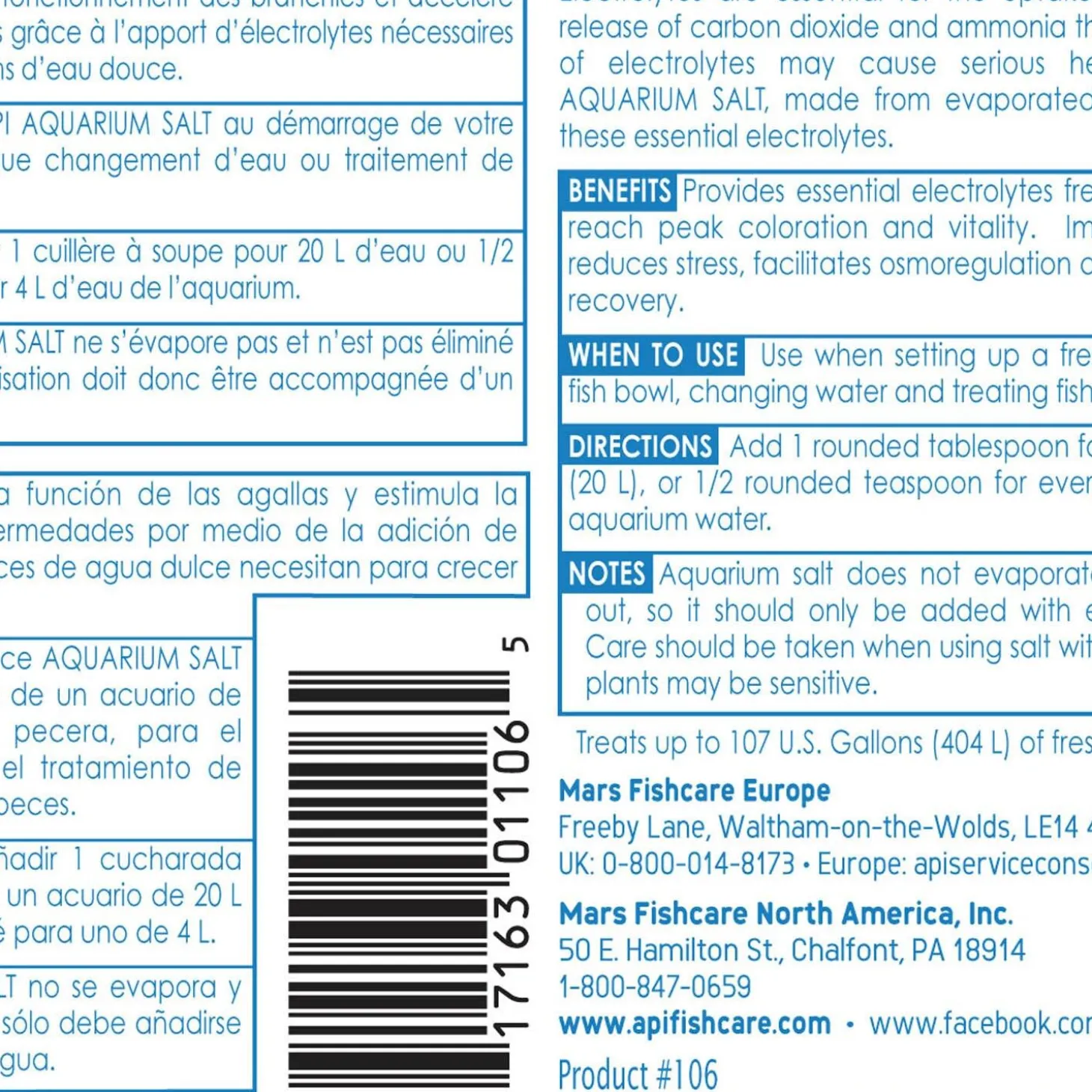 API Aquarium Salt supplies electrolytes to improve fish respiration. Made from evaporated sea water and containing natural active ingredients such as a natural fish tonic, API Aquarium Salt promotes the overall health of your fish by improving their gill function and reducing stress in a freshwater aquarium. This all-natural salt provides the essential electrolytes fish need for the uptake of oxygen and release of carbon dioxide and ammonia through the gills.