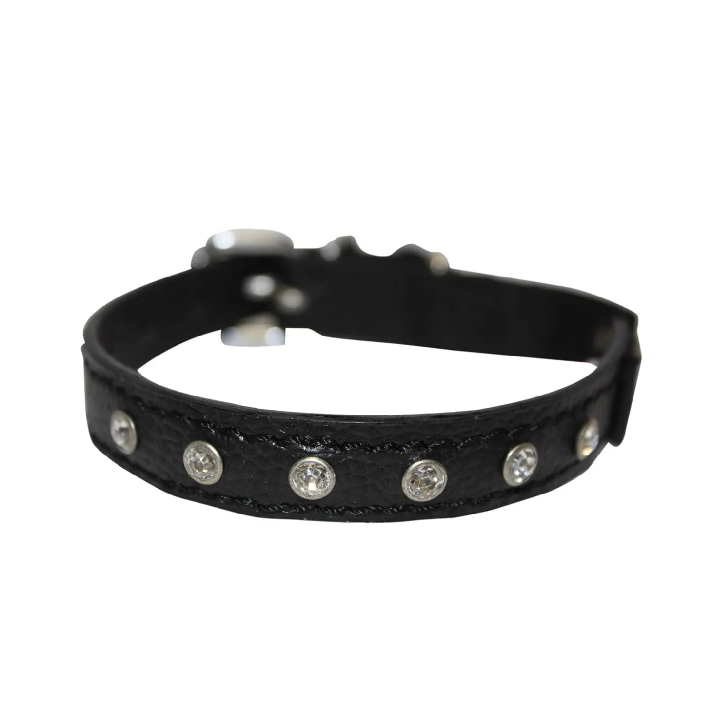 Angel Athens Leather with Rhinestones Midnight Black Cat Collar is 100% genuine leather, with elastic break-away and bell as safety features. Your cat will make a serious impression with this gorgeous rhinestone collar. The most light weight, comfortable and affordable collars for cats.