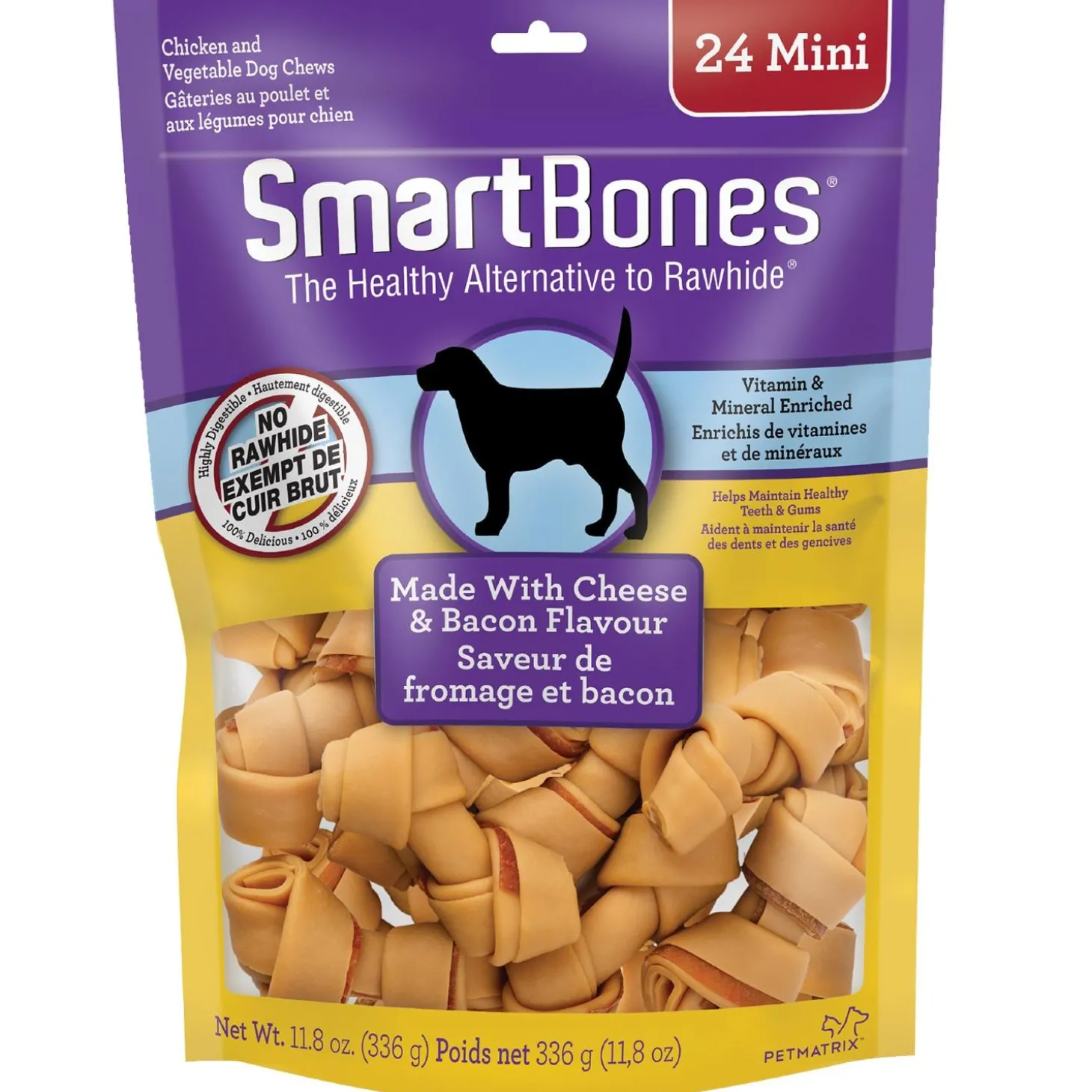SmartBones Bacon & Cheese Chews Have All the Benefits of a Rawhide Chew – WITHOUT the RAWHIDE! No rawhide SmartBones are made with real bacon & cheese, chicken and wholesome vegetables for a scrumptious taste dogs can’t resist!