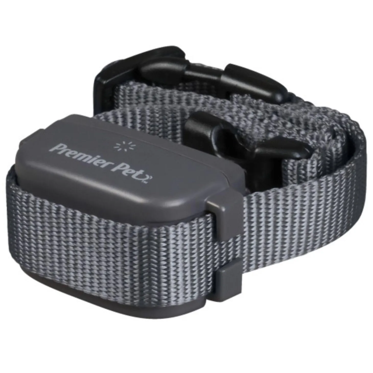 Premier Pet Bark Dog Collar discourages barking for all size dogs. If your dog barks, the collar detects the vibration of your dog’s vocal cords and issues a gentle static correction. This correction will not be triggered by the bark of any dog except the one wearing the collar. With 15 levels of automatically adjusting static correction, this anti-bark collar ensures your dog receives the best level for his/her temperament. The correction will start at the lowest level and will only increase if barking persists. No programming required! This water resistant collar has a nylon strap that is adjustable up to 71.1cm (28″), making it a great fit for both smaller and larger dogs. A low battery indicator on the collar will alert you when the collar battery should be replaced. A built-in safety feature will automatically shut off the collar for 3 minutes if your dog barks 15 times or more within a 1 minute 20 second period. Live peacefully together with your dog, small or large, by discouraging barking when using the Premier Pet Bark Collar!