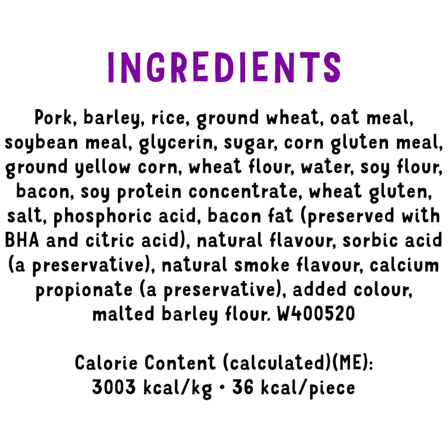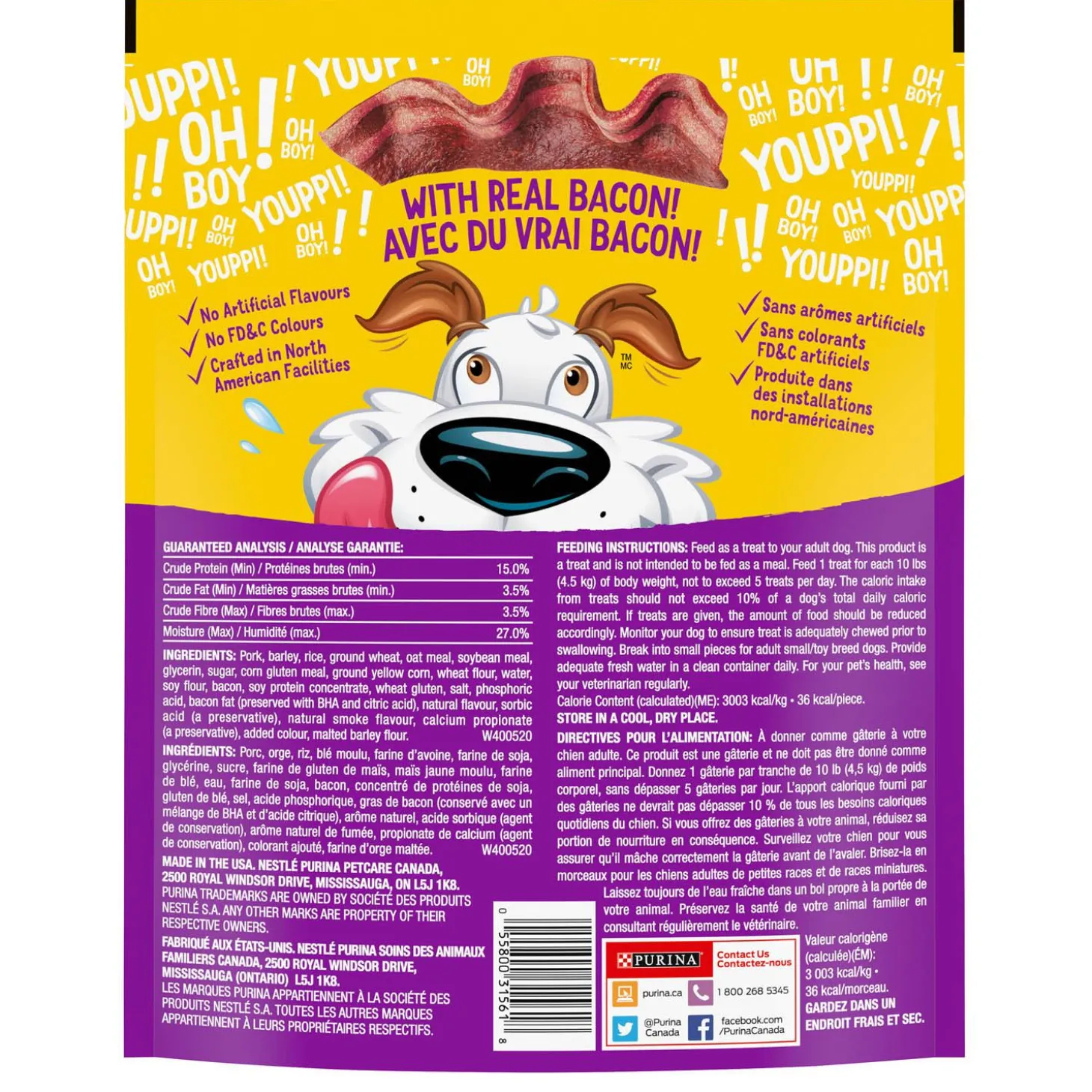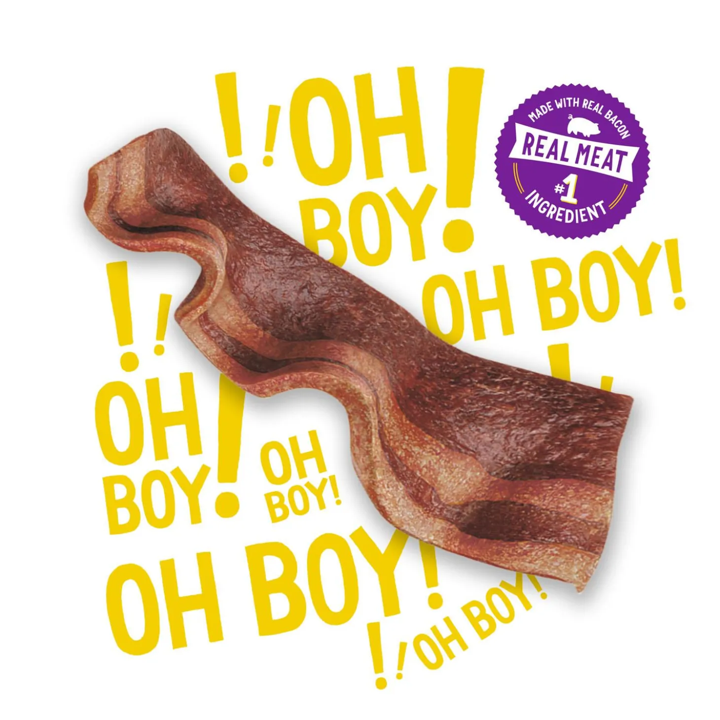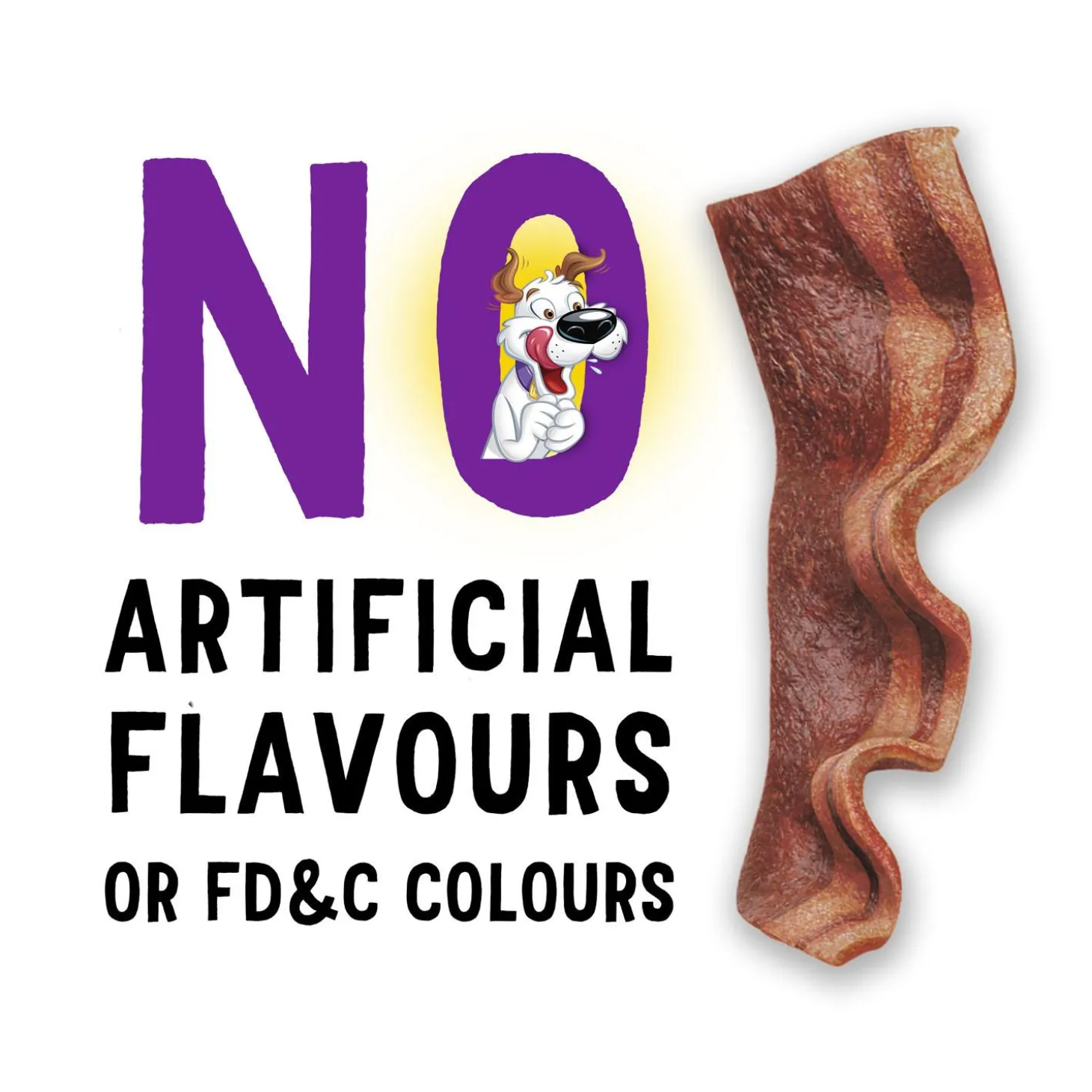 - Bacon flavoured dog treats with real meat as the #1 ingredient
