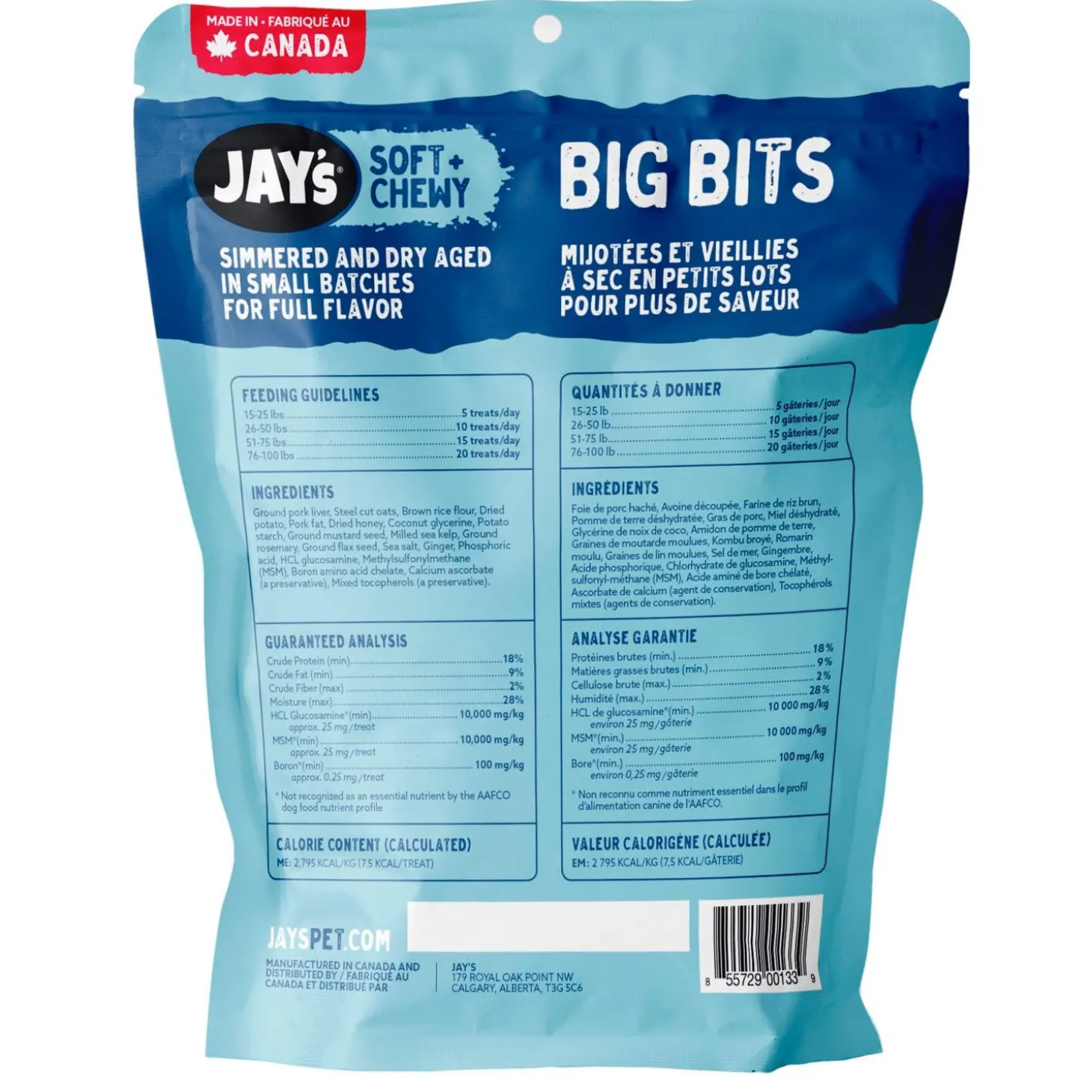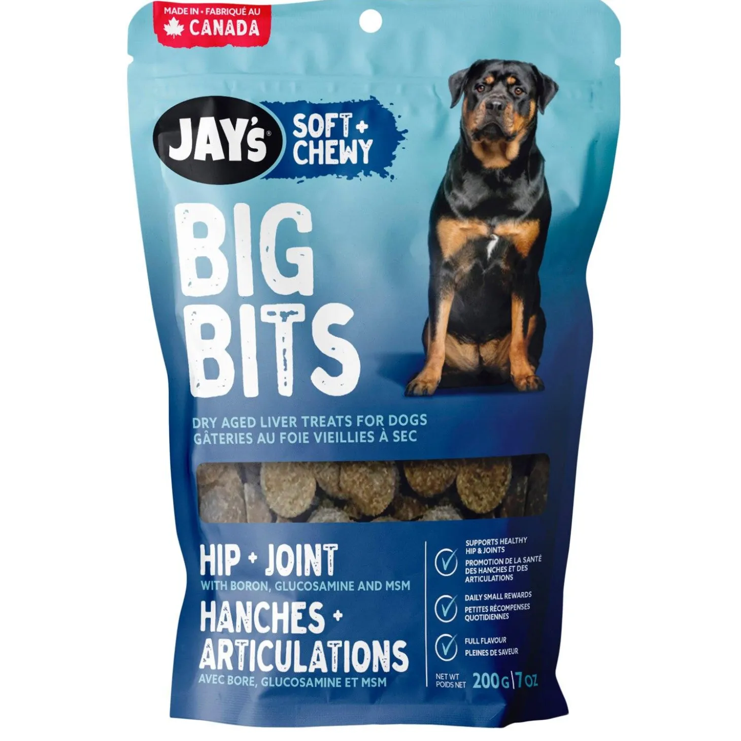 Jay’s Big Bits Hip & Joint Liver Dog Treats are delicious soft and chewy bite sized morsels that are perfect for rewarding your dog. They help provide support for your dog’s hip & joints.