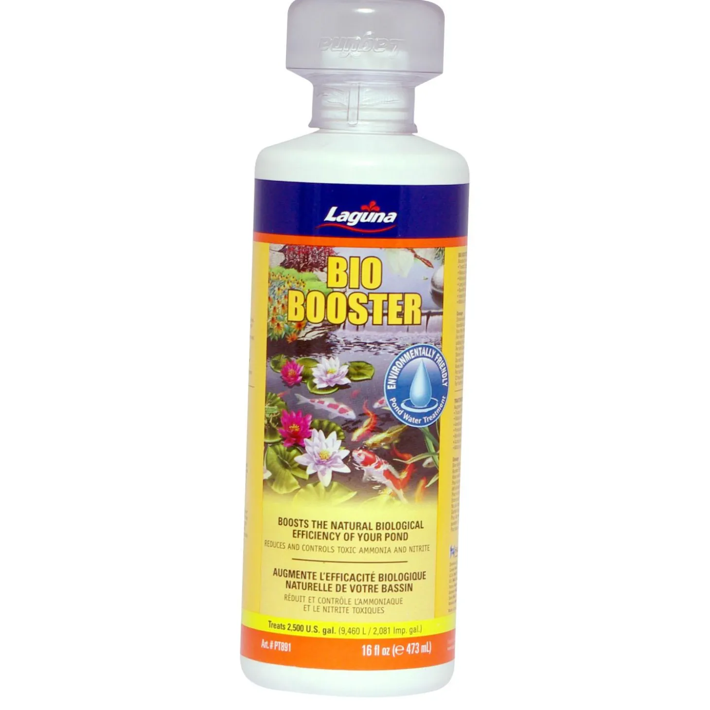 Laguna Bio Booster Pond Water Conditioner quickly goes to work as soon as you put it in the water and it provides long-lasting results. This biological water treatment contains millions of beneficial bacteria that boost the natural biological efficiency of ponds as well as reduce and control toxic ammonia and nitrite. Bio Booster also matures filters and filter media, which is critical for the growth of beneficial bacteria. Safe for fish and plants, Bio Booster creates optimum water conditions for the entire pond environment.