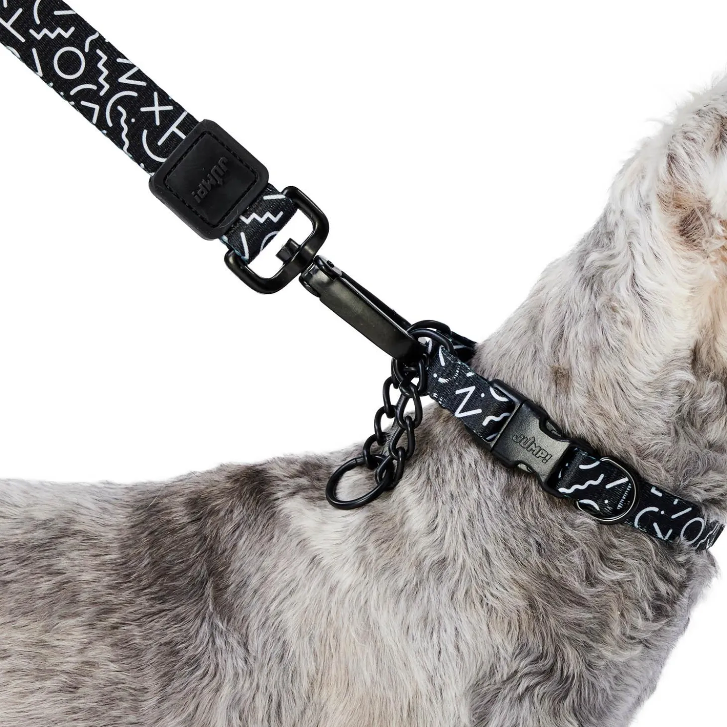 JUMP! Black & White Dog Leash is lightweight and made with premium nylon. Attached to the handle is a ring for poop bag attachment. Available in 6 bright patterns and prints to co-ordinate with the Jump Fashion Collars, Martingale or Harness (All sold separately).