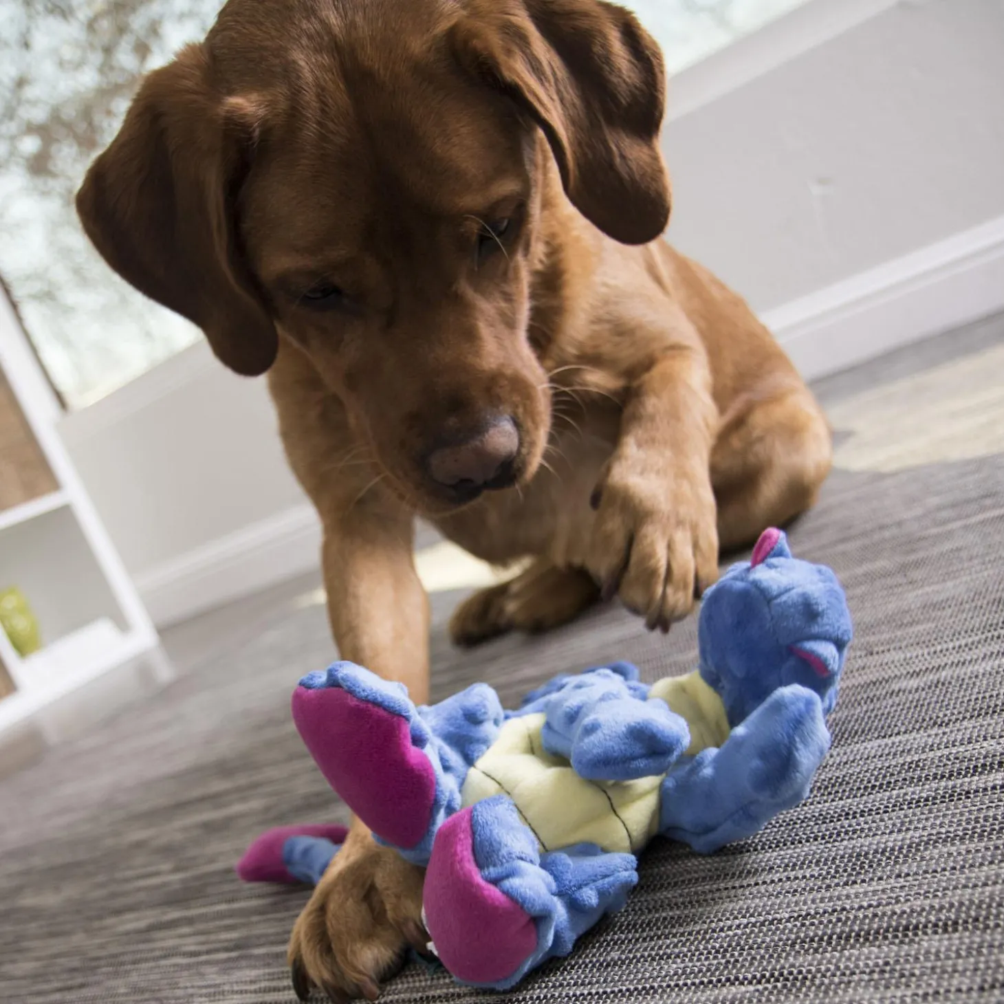 goDog Blue Dragon Dog Toy is a whimsical, bright creature which is as tough as it is cute. Made with bubble plush and lined with Chew Guard Technology, this toy stand up to tough play. Minimal stuffing gives this toy a fun floppy feel that dogs love. goDog plush dog toys are designed to be stronger and last longer. Made more durable with Chew Guard Technology a special manufacturing process that adds a super tough and durable lining to soft plush toys.