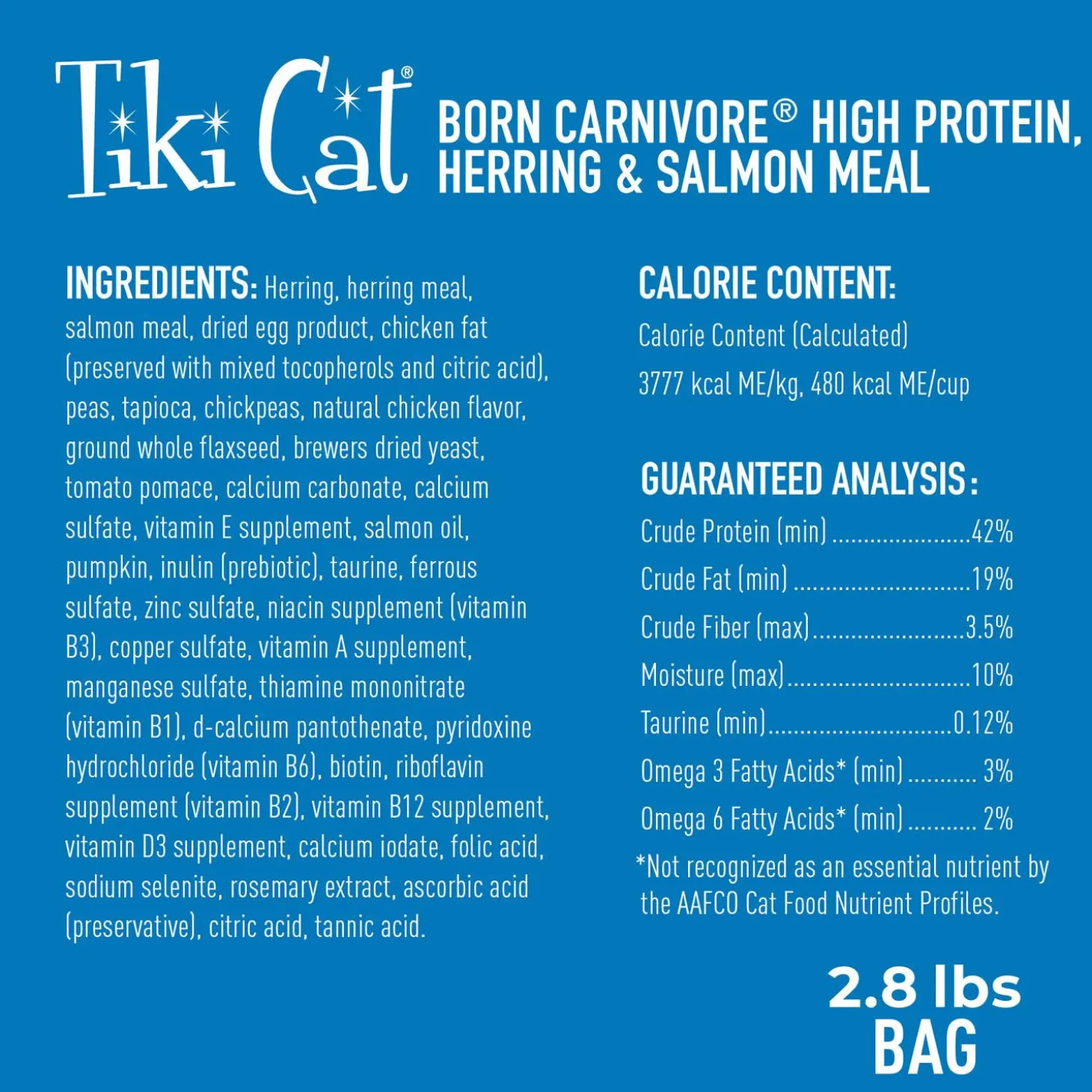 Tiki Cat Born Carnivore High Protein Herring & Salmon Meal Recipe Cat Food gives your cat the meat they crave. This delicious dry kibble is bursting with protein from real, fresh-caught herring.