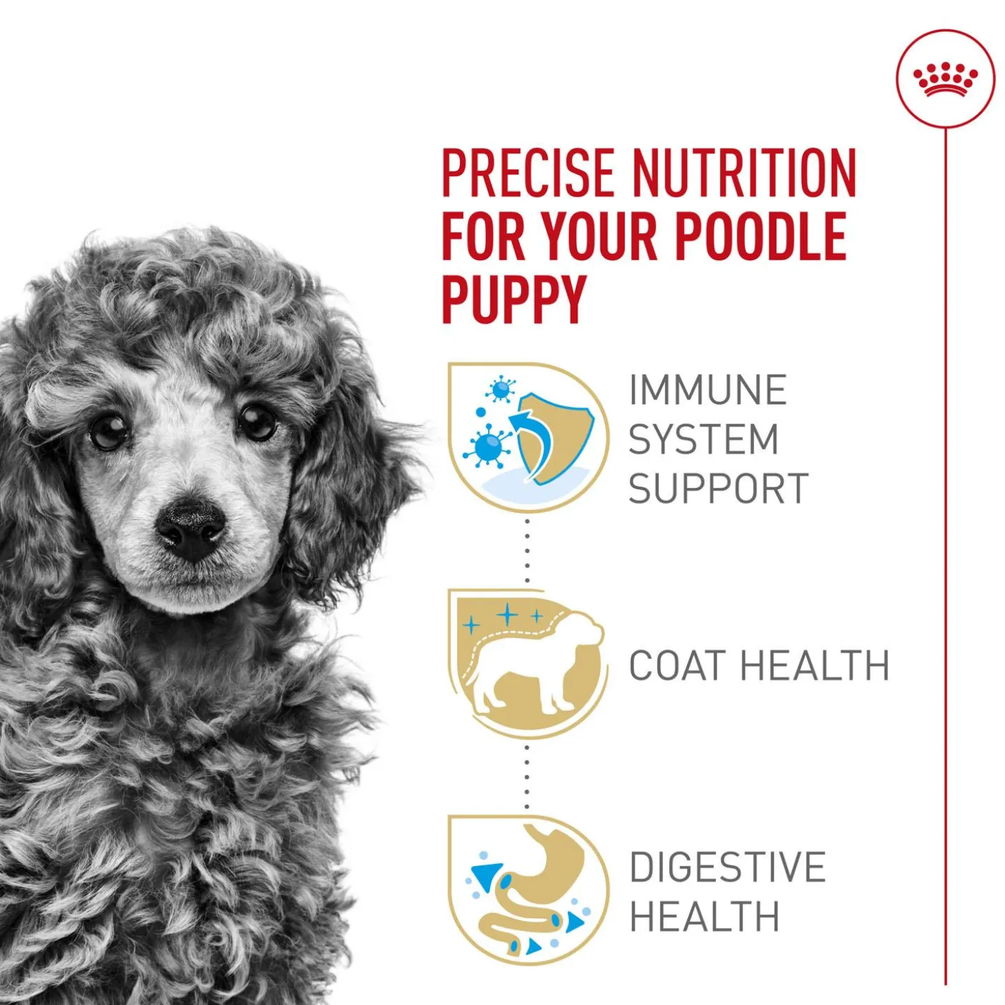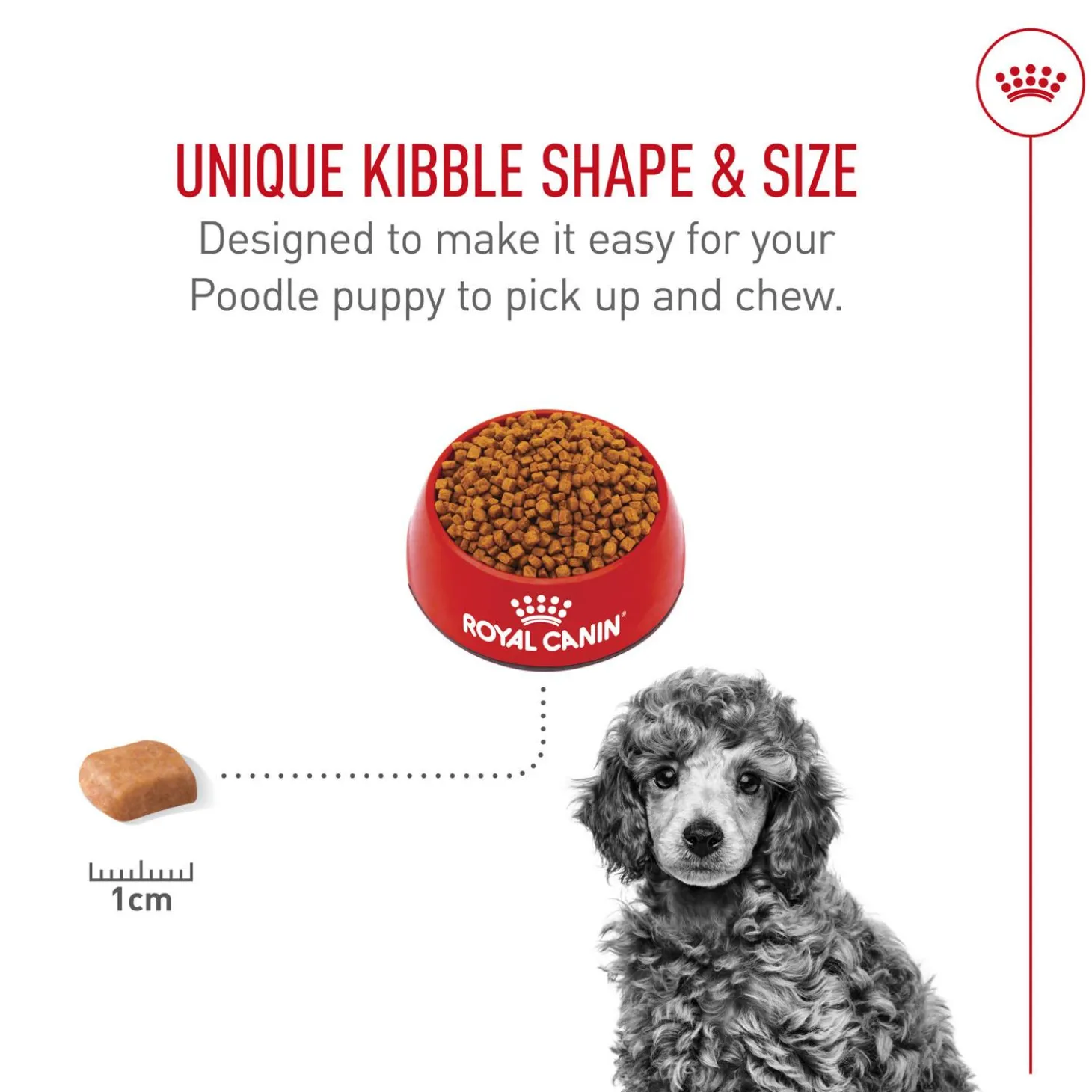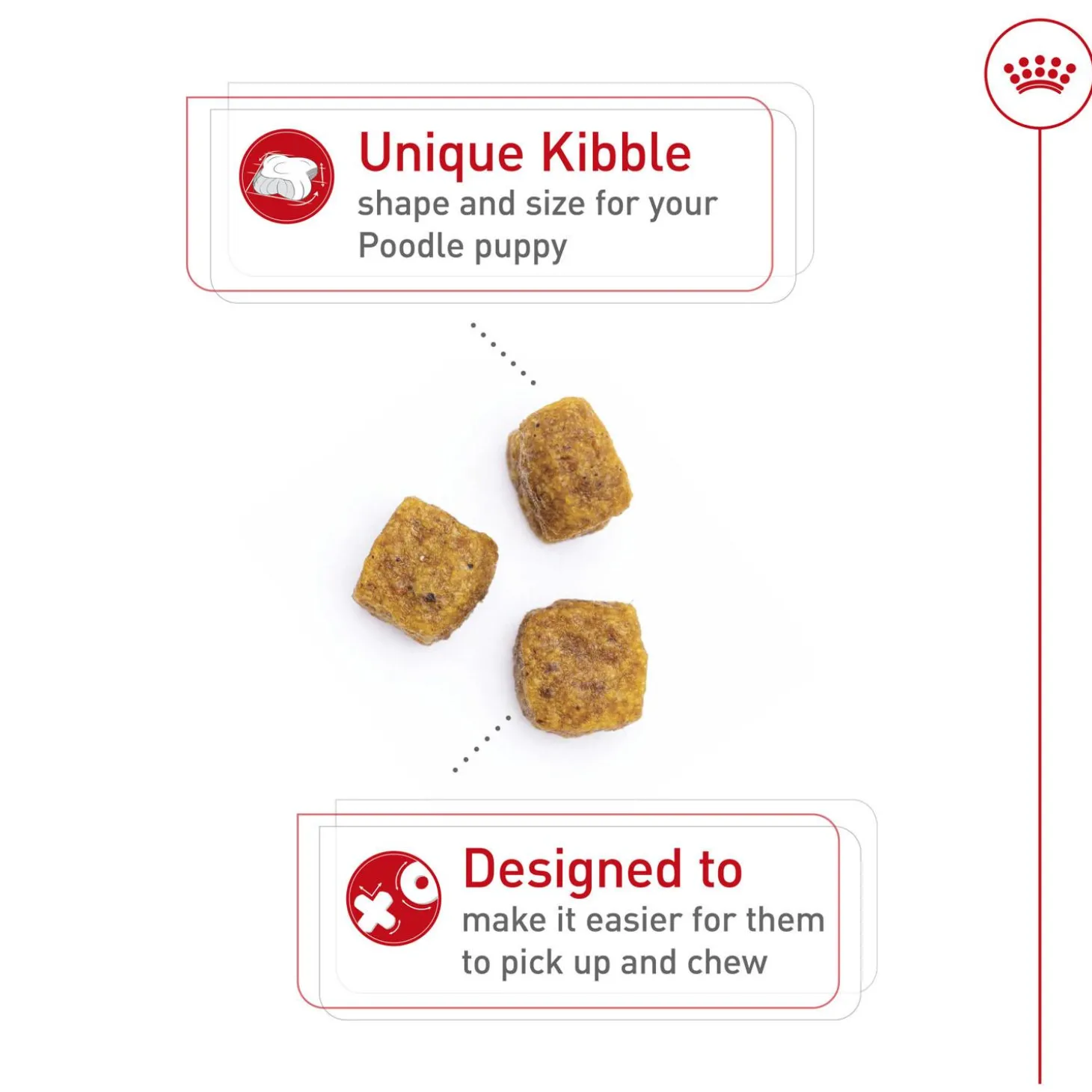 - This exclusive kibble has been developed to be perfectly adapted to the jaw of the Poodle puppy making it easy to pick up and chew.