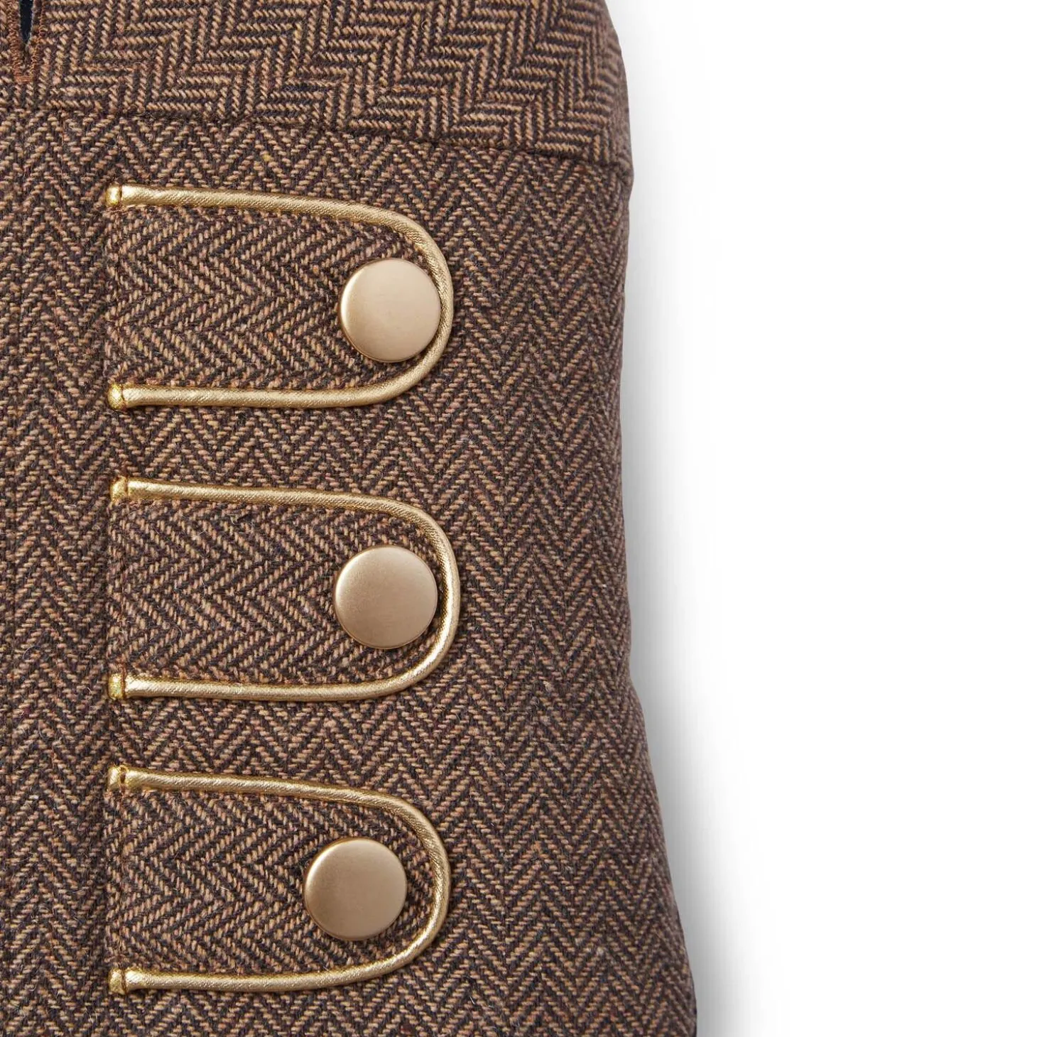 Bailey & Bella Brown Tweed Coat will give your pets wardrobe a European feel. Perfect for cooler weather. Its gold trim gives this coat a regal look that you and your pet with love. Belly opening with hook and loop fastener detail allows you to easily put it on or take it off your pet.