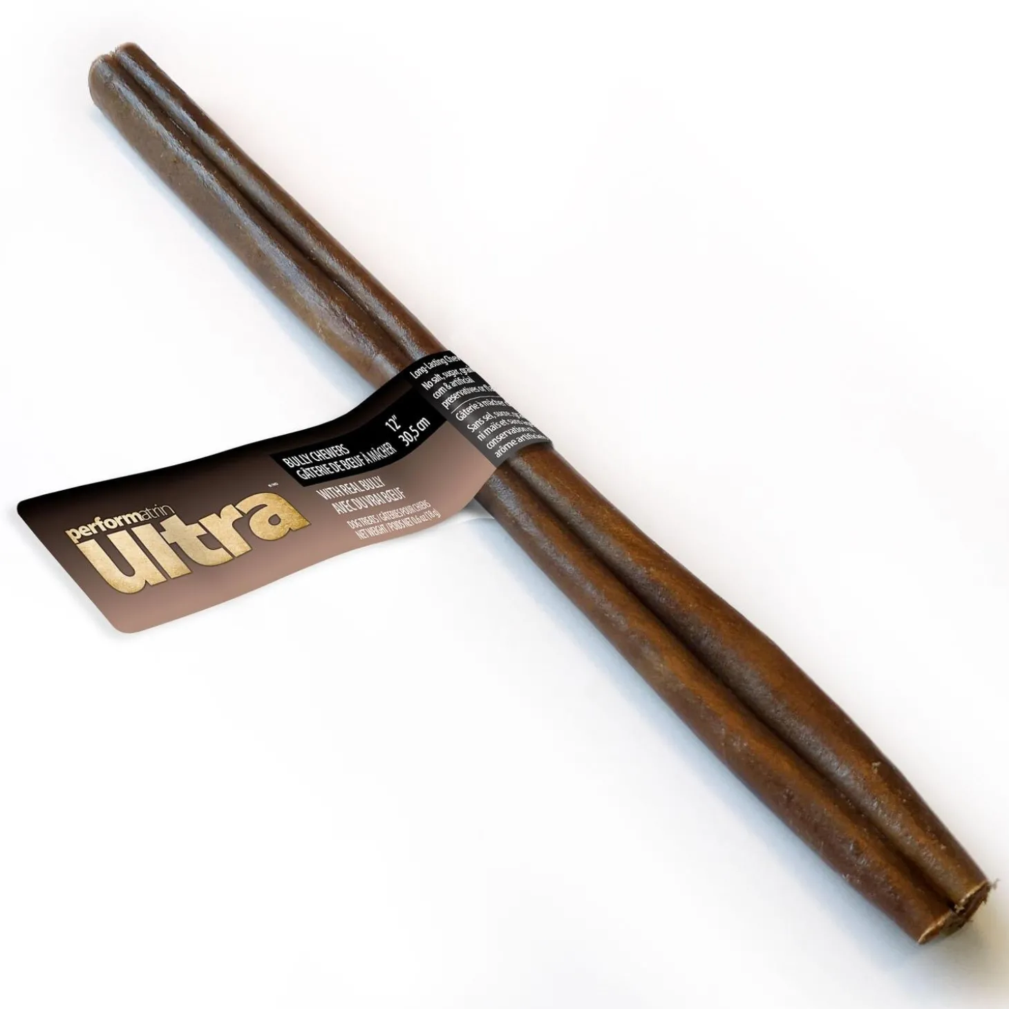 Performatrin Ultra Bully Chewers 12in Dog Treats are made with real beef pizzle from carefully sourced grass-fed cattle. These long-lasting, odor free chews are perfect for all types of chewers and help fulfill your dog’s natural chewing instinct, while also helping clean their teeth and gums. With their great taste and natural ingredients, Performatrin Ultra Bully Chewers are the natural way to provide endless fun for your best friend!