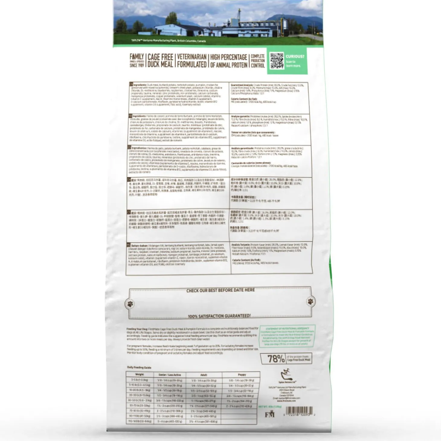 FirstMate Cage Free Duck Meal & Pumpkin Formula Small Bites Dog Food proudly sources Cage-Free Duck from France. Duck, as a novel protein, combined with pumpkin for its digestive benefits, can help to address common food sensitivities that pet parents have come to appreciate from FirstMate. The small bite kibble is perfect for smaller mouths. This Limited Ingredient, pea free diet is easy on digestion and highly palatable.