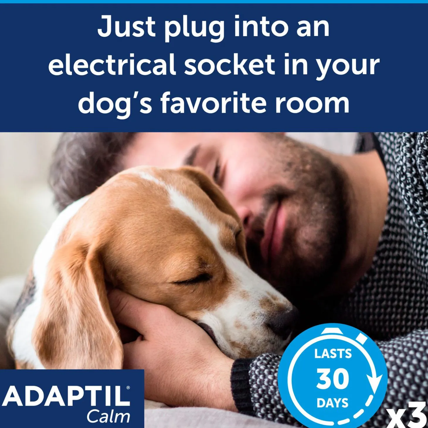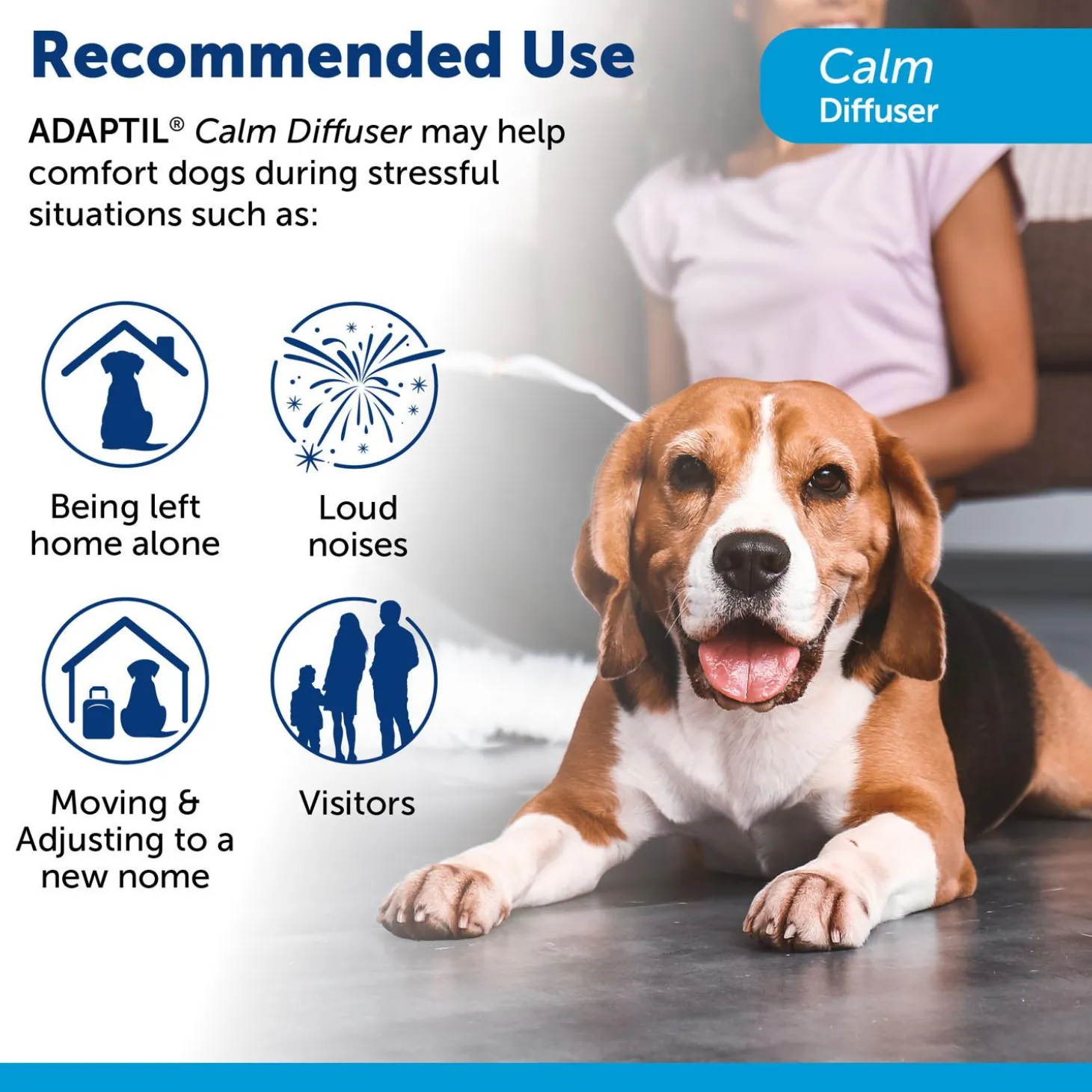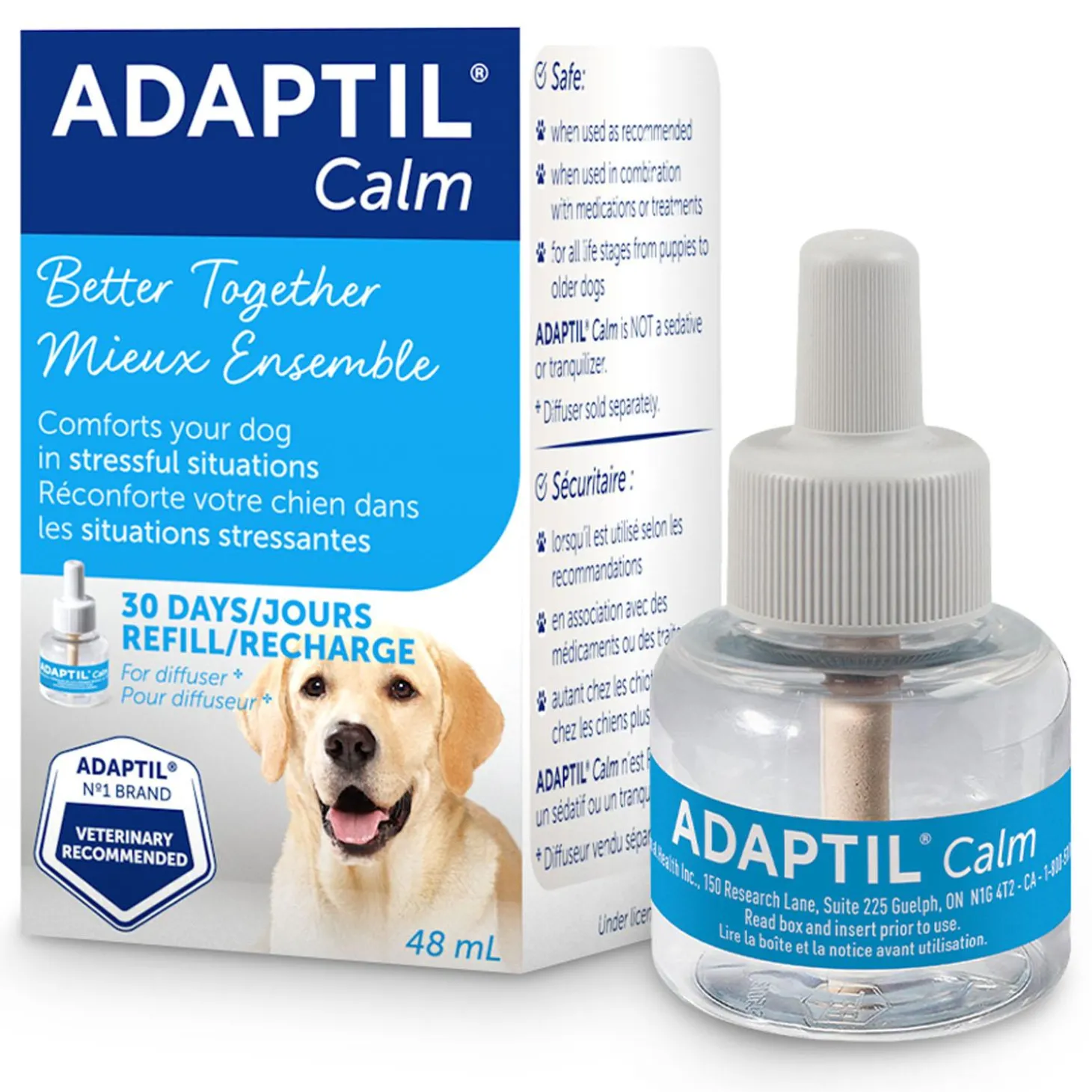 ADAPTIL Calm 30 Day Diffuser Refill is a solution that may help comfort your dog during stressful situations at home. ADAPTIL Calm is clinically proven to help improve your dog’s well-being, with a hassle-free setup and backed by decades of expertise.