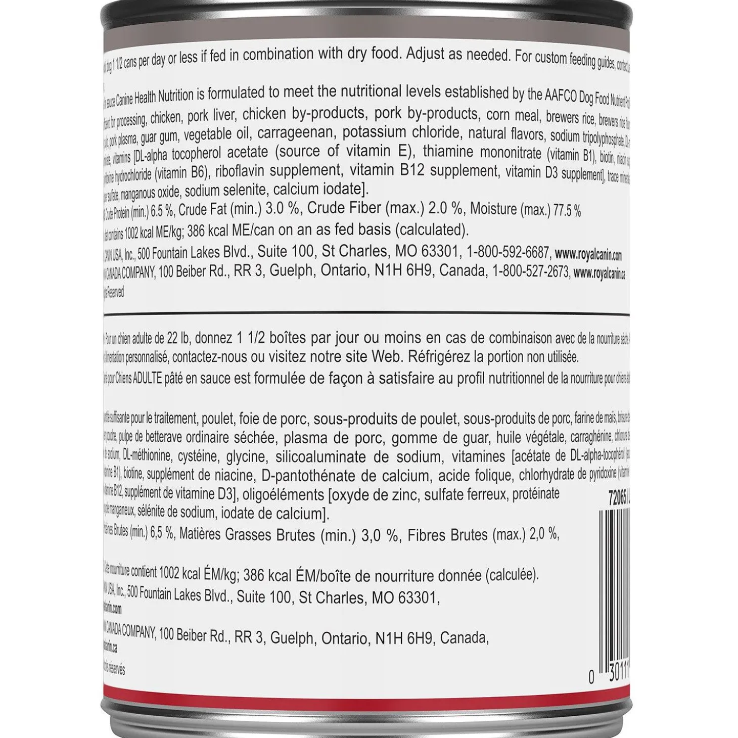 Royal Canin Canine Health Nutrition Loaf In Sauce Adult Dog Food features targeted nutrition to provide optimal levels of nutrients for the specific needs of adult dogs up to 8 years of age.