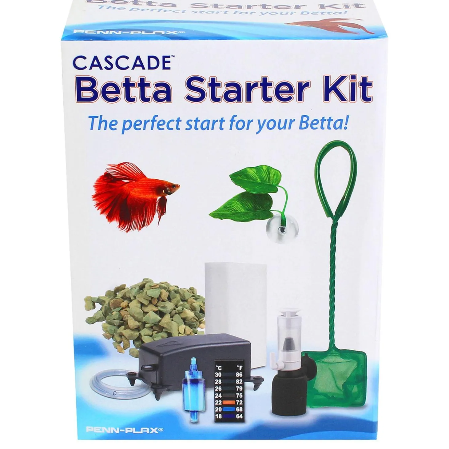 PENN-PLAX Cascade Betta Starter Kit offers a great value for new fish owners, or for aquarists looking to get most of the tools needed for Betta keeping. This kit comes standard with 9 pieces, including a nano air pump and mini sponge filter.