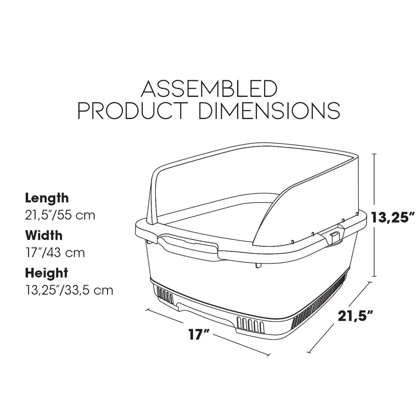 - A matching 15cm (6″) extension that adds extra height to the walls of your litter box. This ingenious addition means that litter scattering and other messes are a thing of the past!