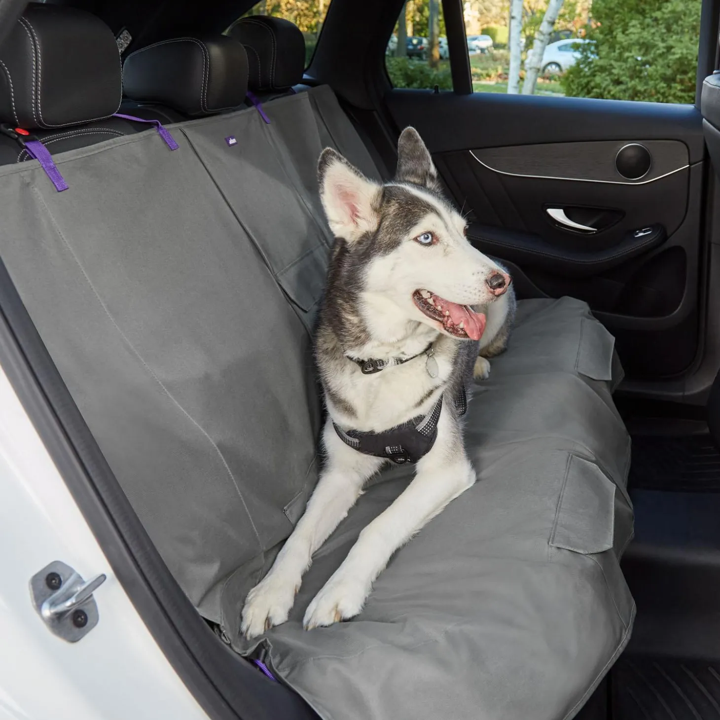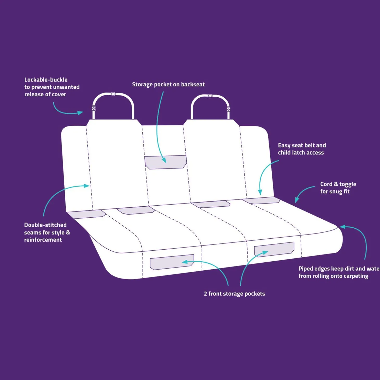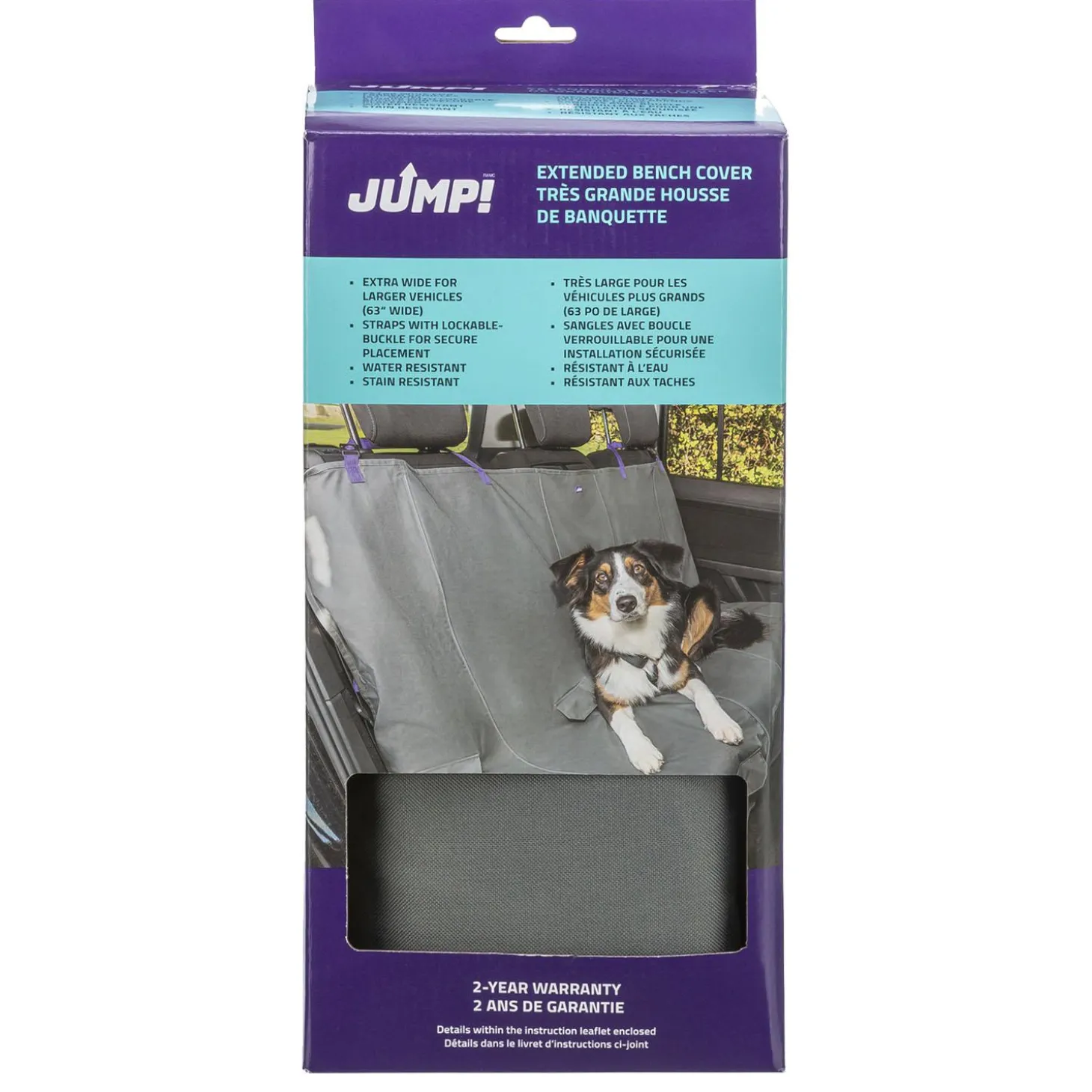 JUMP! Charcoal Grey Extended Bench Cover ensures your seats are protected so bring your pet along! Pet hair & muddy paws don’t stand a chance against the JUMP! Extended Bench Cover. Protect your vehicle from muddy adventures while keeping your pet secure with this durable, water resistant barrier between your dog and vehicle. Lockable buckles prevent unwanted release of bench from car.