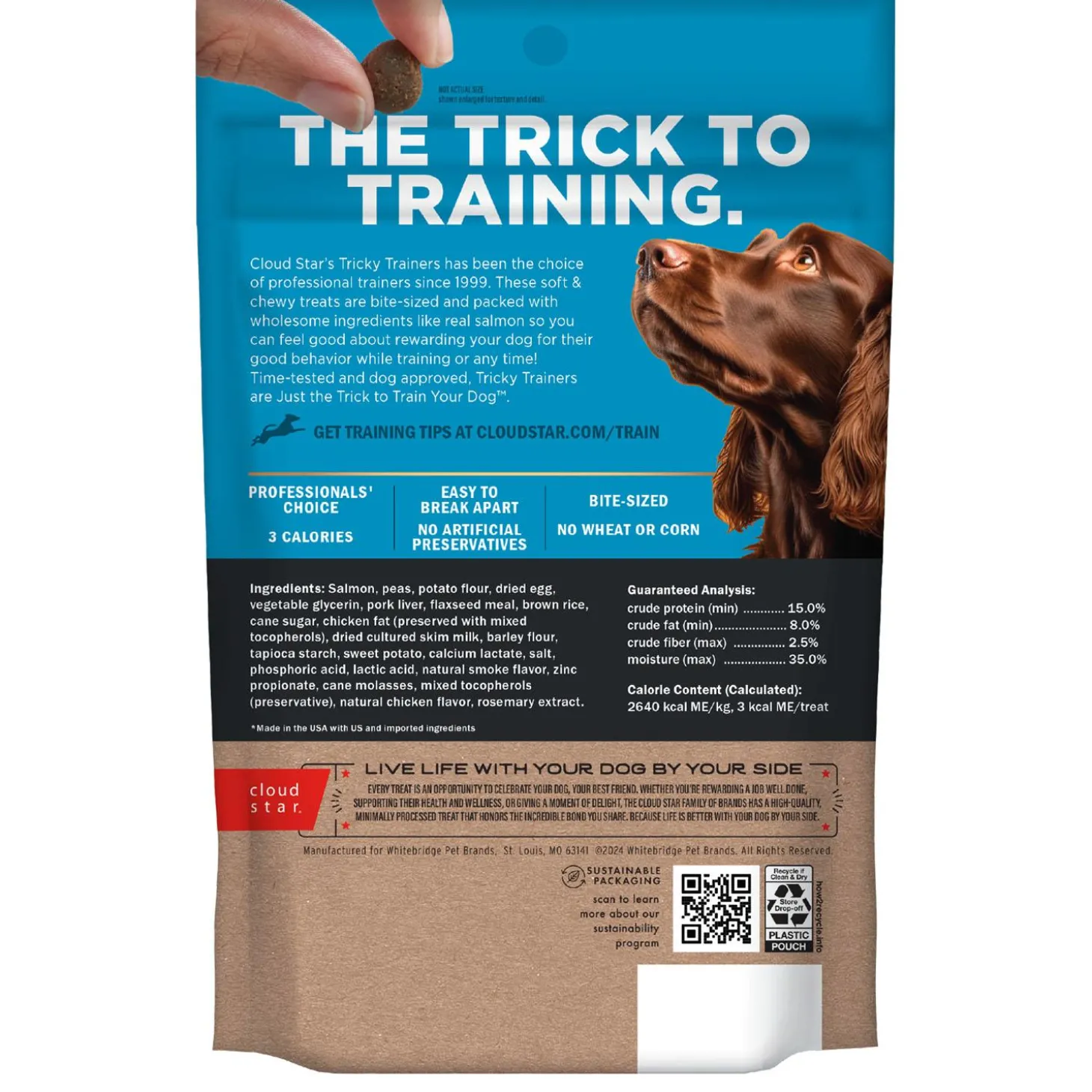 Tricky Trainers Chewy With Salmon Dog Treats are the trick to training. These treats have been the trusted choice of professional trainers since 1999. These highly aromatic soft & chewy treats are bite-sized and packed with wholesome ingredients so you can feel good about rewarding your dog for their good behaviour during training sessions or any time! Each treat has only 3 calories – the perfect option for frequent training and treating sessions! Time-tested and dog approved, Tricky Trainers are Just the Trick to Train Your Dog.