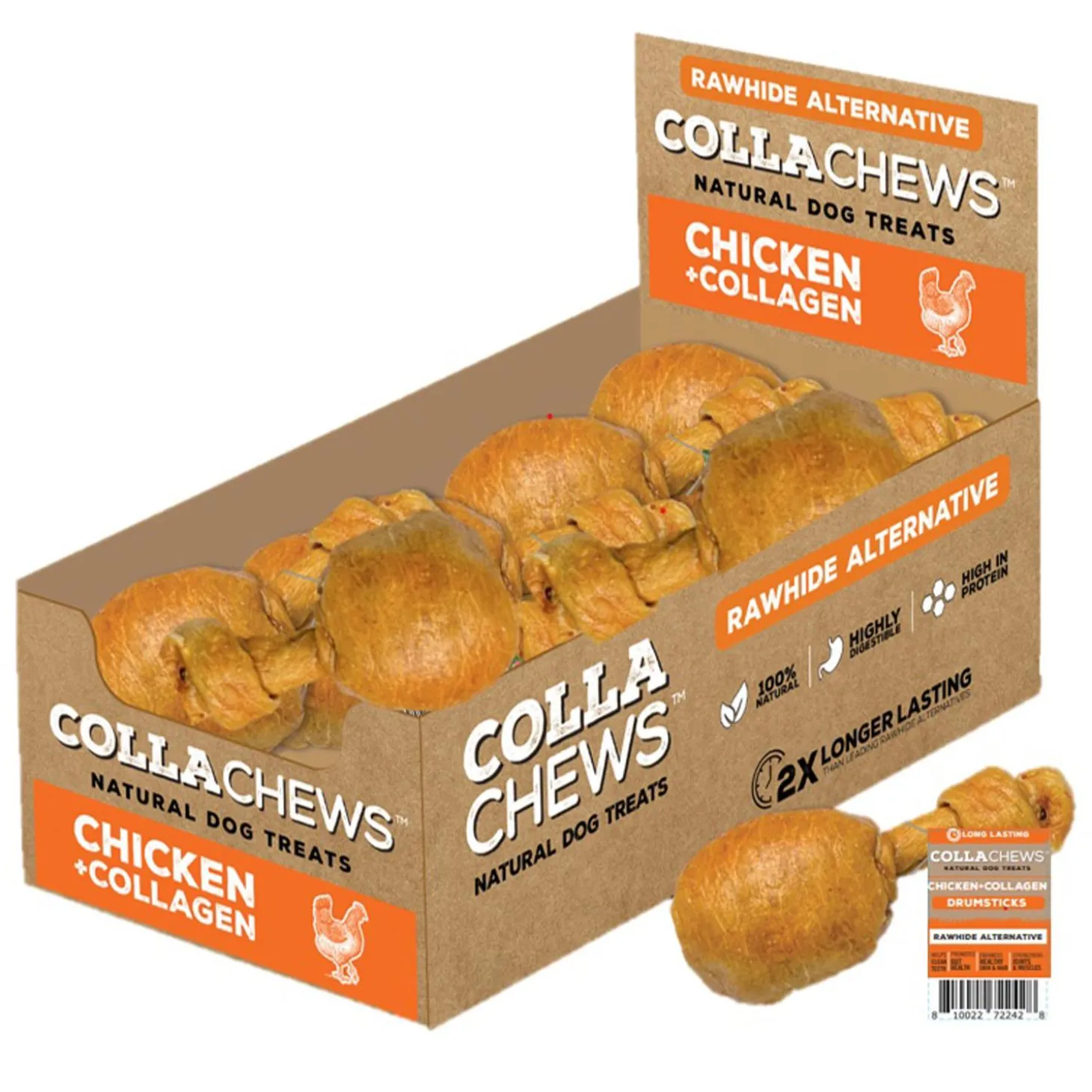 CollaChews Chicken Collagen Drumsticks Dog Treats are all-natural rawhide alternatives made of Collagen from grass-fed beef and real chicken, and beef. Scientifically tested for digestibility these chews are meticulously hand crafted to assure your pup gets a healthy, safe, and tasty treat. Jam packed with protein (and free of artificial additives), CollaChews help fuel your precious pup’s active day and also help support healthy joints, shiny skin and coat, and a strong and active lifestyle.