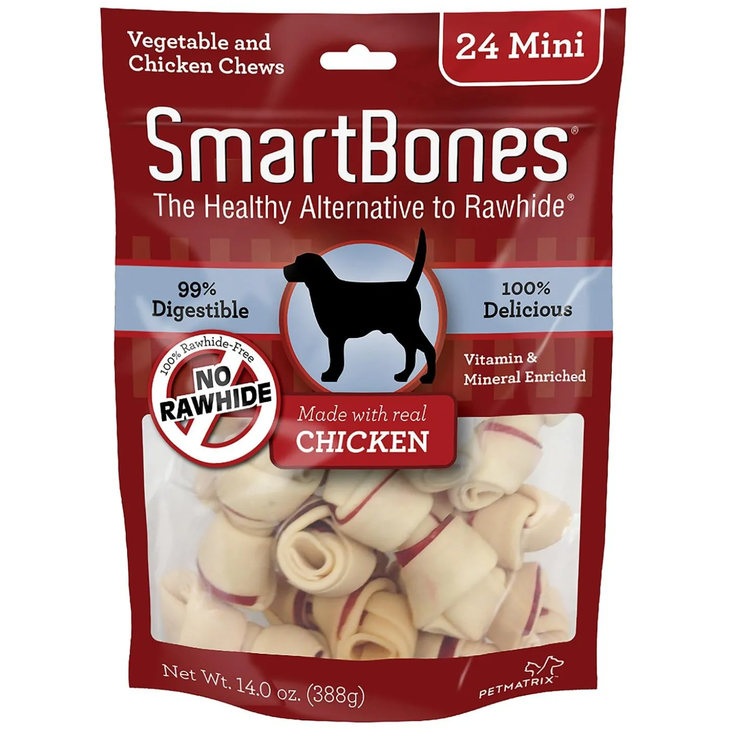 Corn, Chicken, Glycerin, Sorbitol, Fructose, Maltodextrin, Barley Malt Syrup, Gelatin, Salt, Natural & Artificial Flavors, Titanium Dioxide, Sweet Potatoes, Peas, Carrots, Xanthan Gum, Dicalcium Phosphate, Sodium Pyrophosphate, Potassium Sorbate (Preservative), Sodium Propionate (Preservative), Sodium Tripolyphosphate, D-Calcium Pantothenate, Vitamin E Supplement, Pyridoxine Hydrochloride, Thiamine Hydrochloride, Ferrous Sulfate, Manganese Sulfate, Zinc Sulfate, Niacinamide, FD&C Red 40, Vitamin B12 Supplement, Riboflavin Supplement