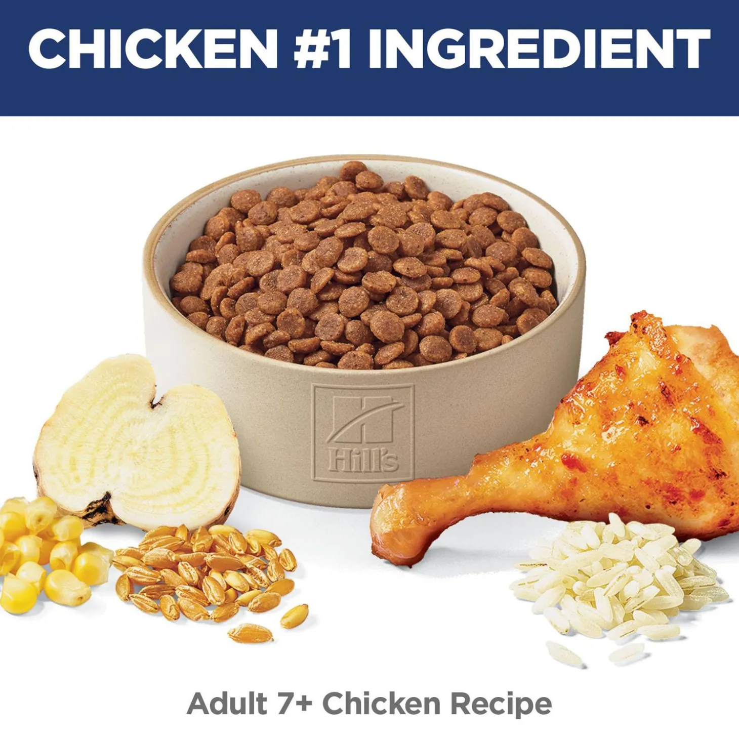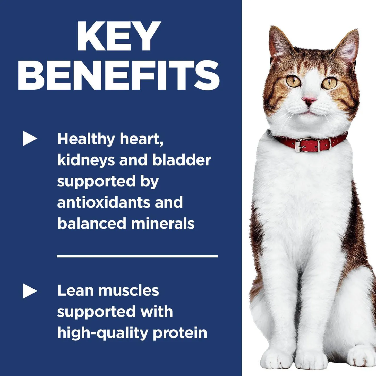 Hill’s Science Diet Chicken Recipe Adult 7+ Cat Food supports graceful aging in cats, providing a synergistic ingredient blend that supports the energy & activity level in older felines. Just because your cat is getting older, it doesn’t mean they’re out of the game. This mature cat food made with natural ingredients provides cats 7 years and older with taurine: an essential component for heart health. Balanced minerals promote bladder and kidney health, while vitamin E, omega-3 and omega-6 fatty acids support healthy skin and fur. Because aging cats can have more sensitive stomachs, this premium pet food is made from easy-to-digest ingredients.