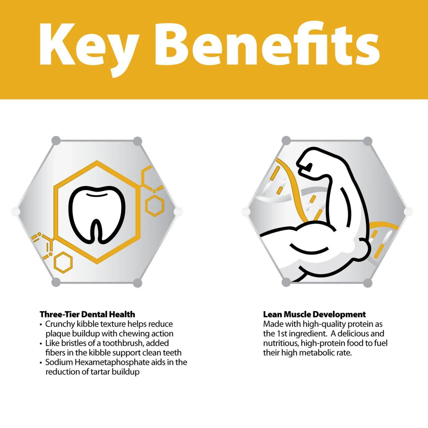 - Crunchy kibble texture helps reduce plaque buildup with chewing action