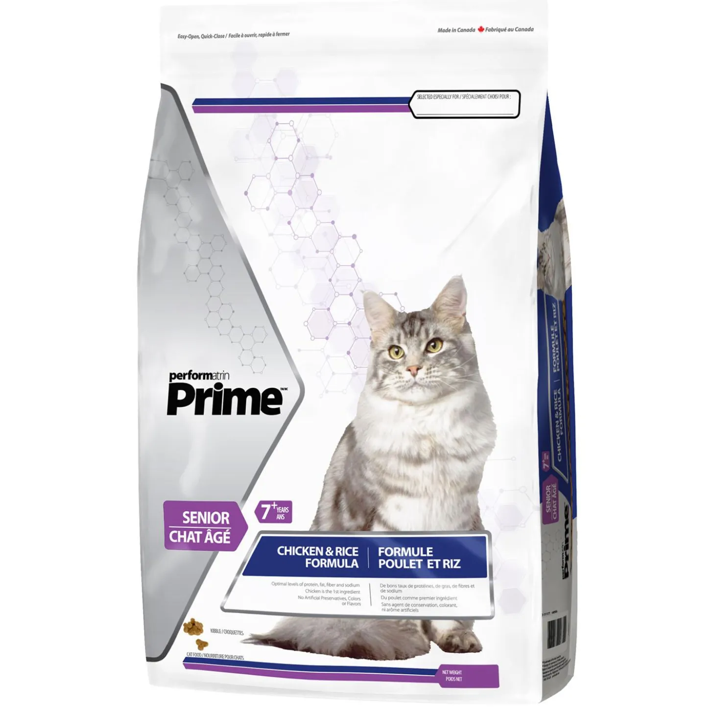 Performatrin Prime Chicken & Rice Formula Senior Cat Food is designed for specific daily energy and nutrient requirements unique to senior cats. Senior cats may require a low-sodium food with extra joint support, as well as an optimal blend of antioxidants, and added L-Carnitine to help them age gracefully and support healthy weight. This food contains 40% less sodium compared to Performatrin Prime Adult Chicken & Rice Formula Adult Cat Food and is formulated to support your senior cat’s ageing needs and support overall health.
