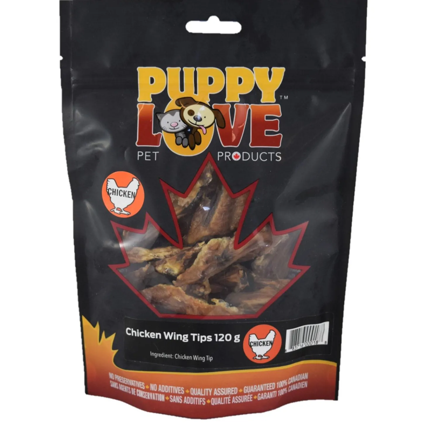 Puppy Love Chicken Wing Tips Dog Treats are a delicious, crunchy snack or treat for your pet. Chicken Wing Tips are a good source of protein and provide naturally occurring glucosamine and chondroitin, which are great for joint health!