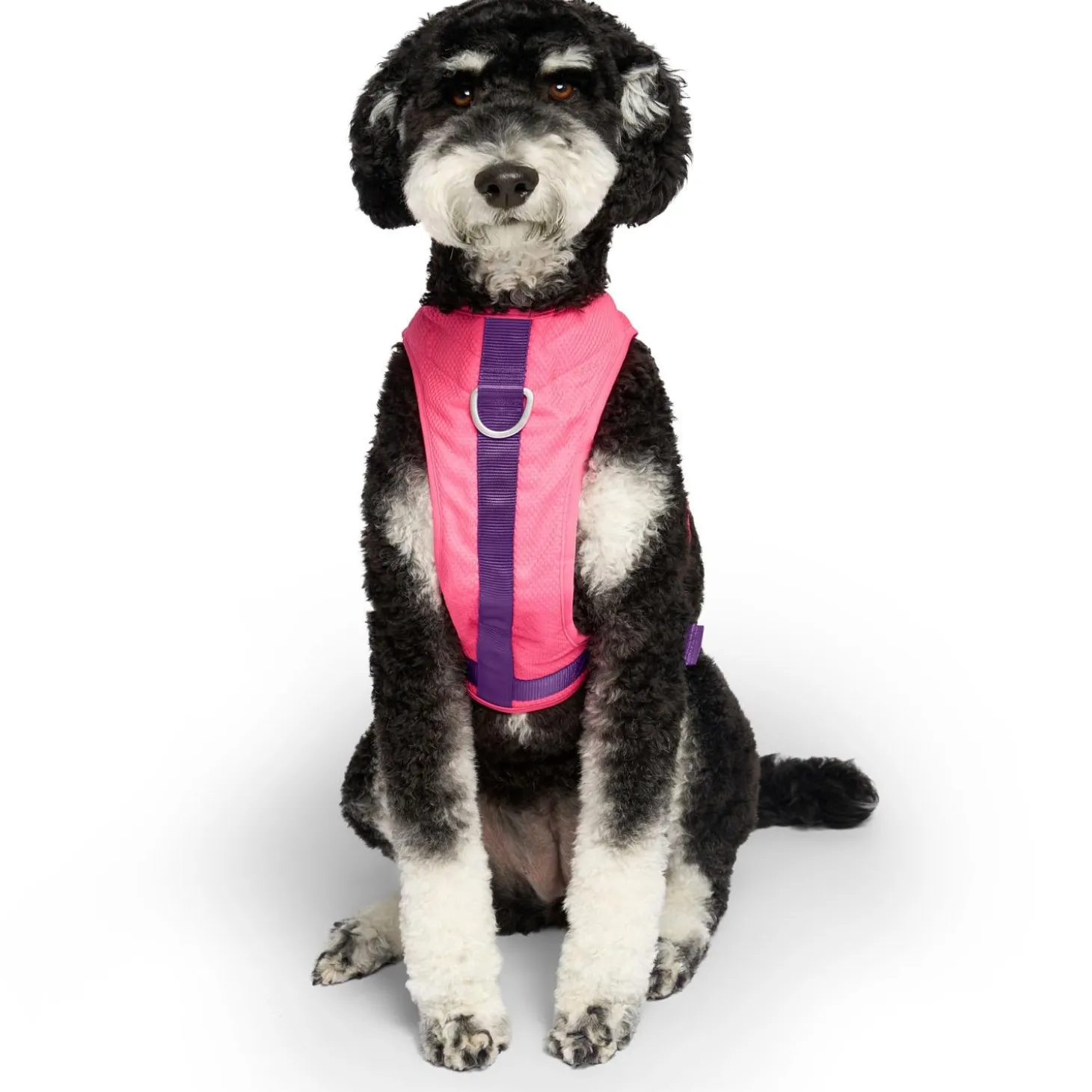 Canada Pooch Chill Seeker Neon Pink Cooling Dog Harness is a functional and stylish cooling vest for hot summer days.