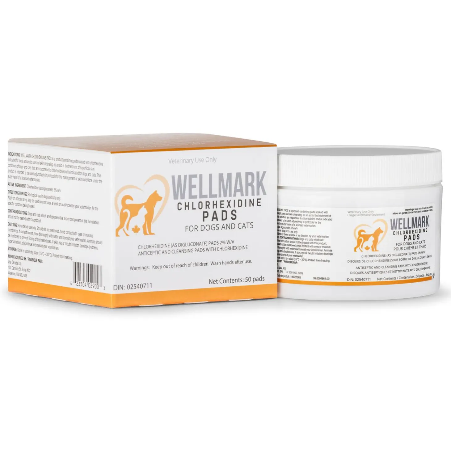 Wellmark Chlorhexidine Pads are for dogs and cats and are antiseptic, antibacterial and antifungal. These convenient, mess-free pads help relieve symptoms of fungal and bacterial infections such as, but not limited to: Pyoderma, yeast dermatitis, ringworm and hot spots. Symptoms for these conditions can include itching, redness, musty odour, flaky or scaly skin, changes in skin texture, and hair loss.