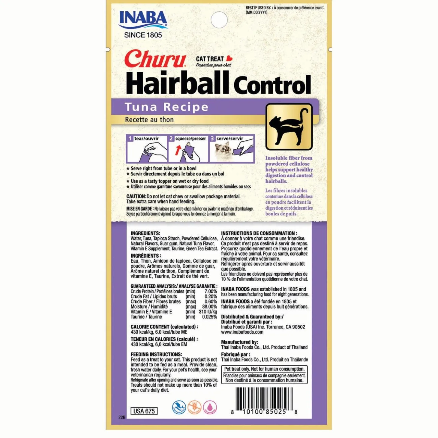 - FUN AND FUNCTIONAL: A first-of-its-kind, creamy puree treat designed to aid with hairball control. The original Churu formula with an added insoluble vegetable fiber to support healthy digestion and control hairballs