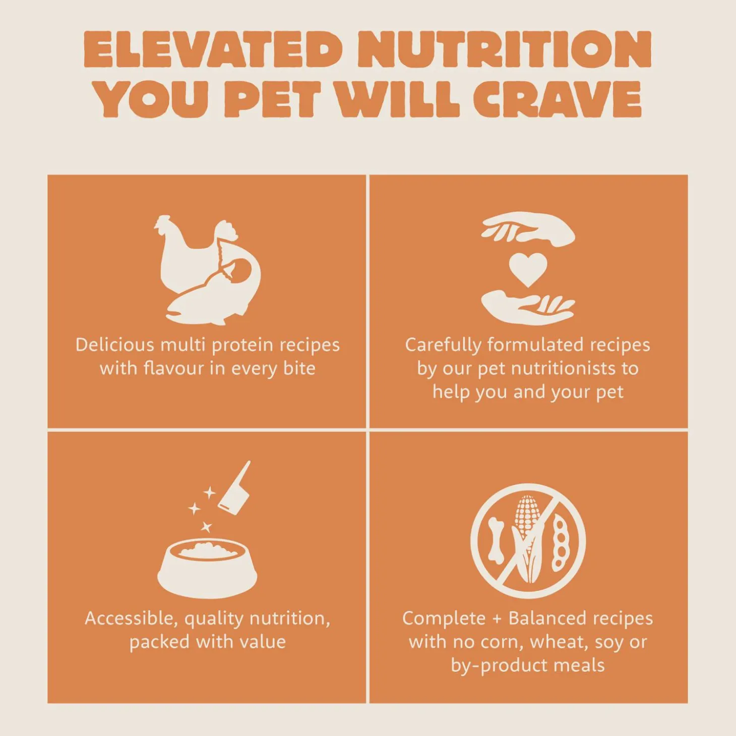 - Complete & balanced recipes with no corn, wheat, soy, white potato or by-product meals