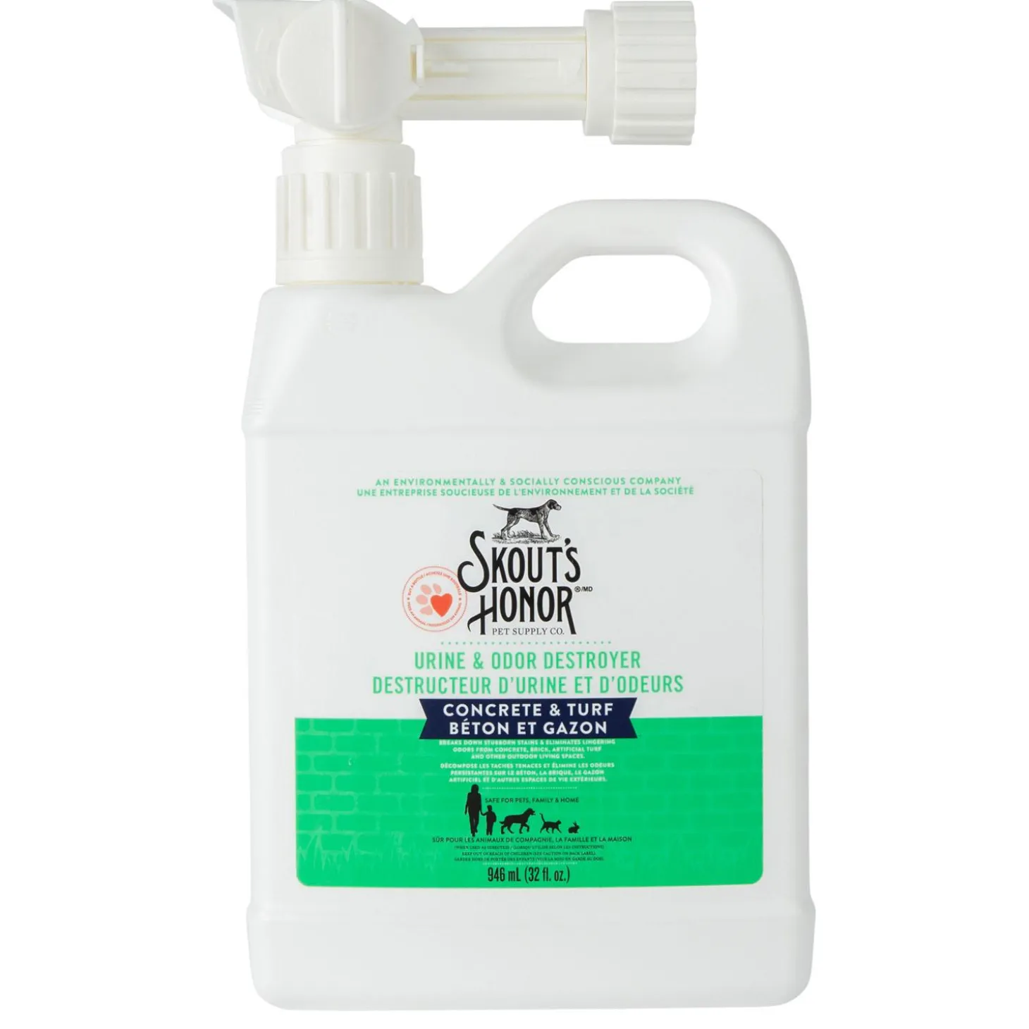Skout’s Honor Concrete & Turf Urine & Odour Destroyer is a powerful and easy-to-use solution to destroy stubborn pet stains and odours from your favourite outdoor living spaces! The Skout’s Honor Urine & Odour Destroyer Concrete & Turf allows pet owners to simply attach to a hose and spray on concrete, brick, artificial turf, outdoor furniture/upholstery and other water-safe surfaces.