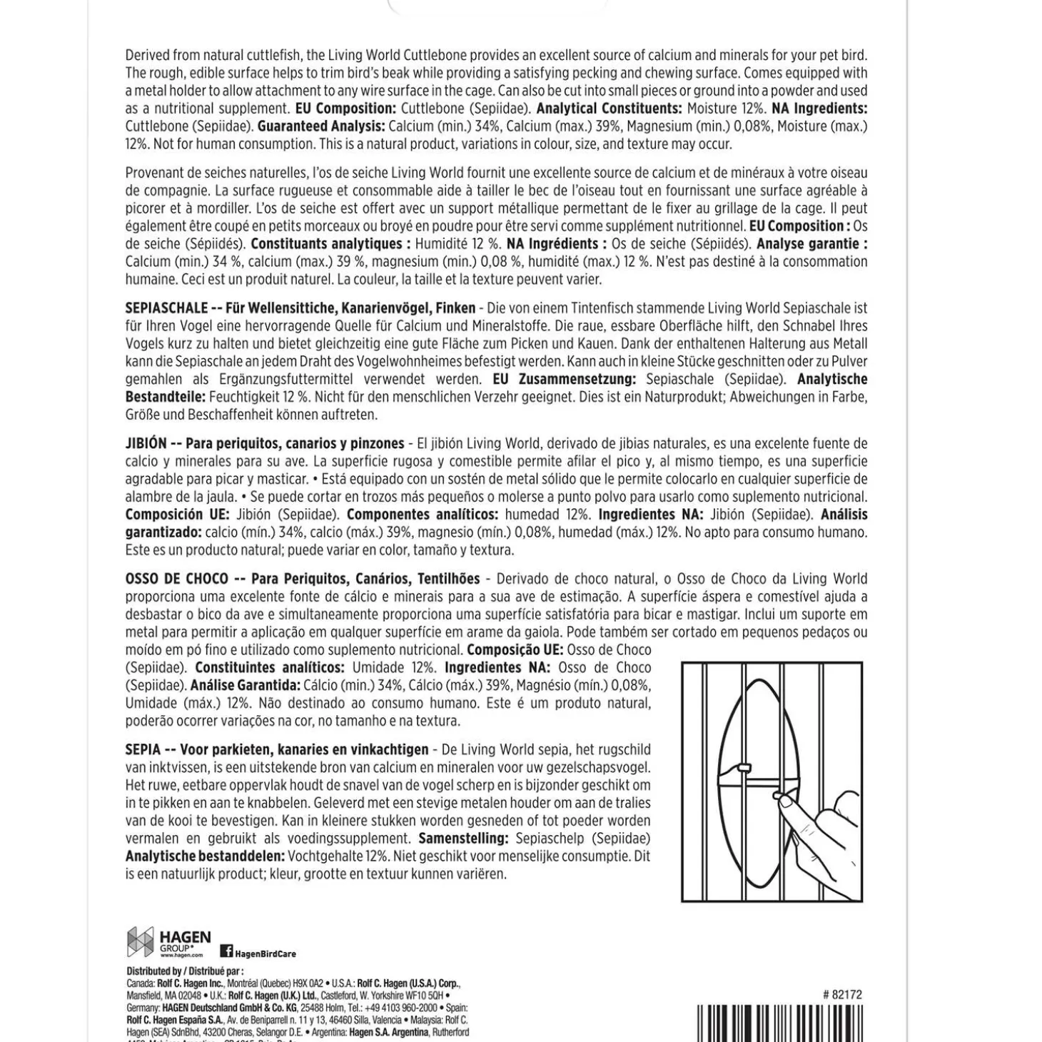 Living World Large Cuttlebone is derived from natural cuttlefish and provides an excellent source of calcium and minerals that are essential to caged birds. The rough, edible helps to trim bird’s while providing a satisfying pecking and chewing surface. Comes equipped with a metal holder to allow attachment to the cage.