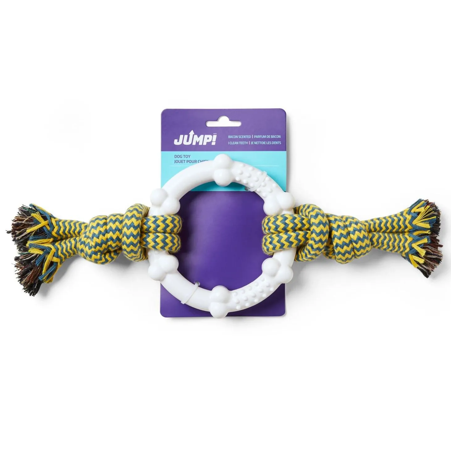 JUMP! Dental Ring Dog Toy features durable nylon for a long-lasting chew. This fun toy, keeps your dog occupied while satisfying your dog’s need to chew.