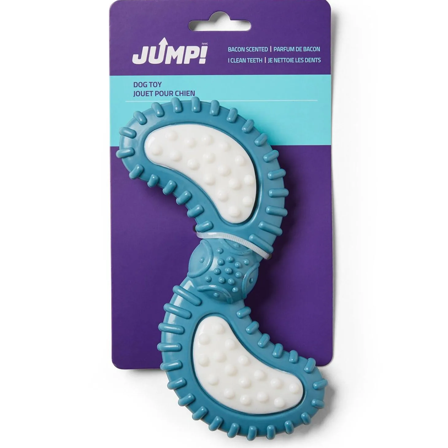 JUMP! Dental Semi Ball Disk Dog Toy features durable nylon for a long-lasting chew. This fun toy, keeps your dog occupied while satisfying your dog’s need to chew.