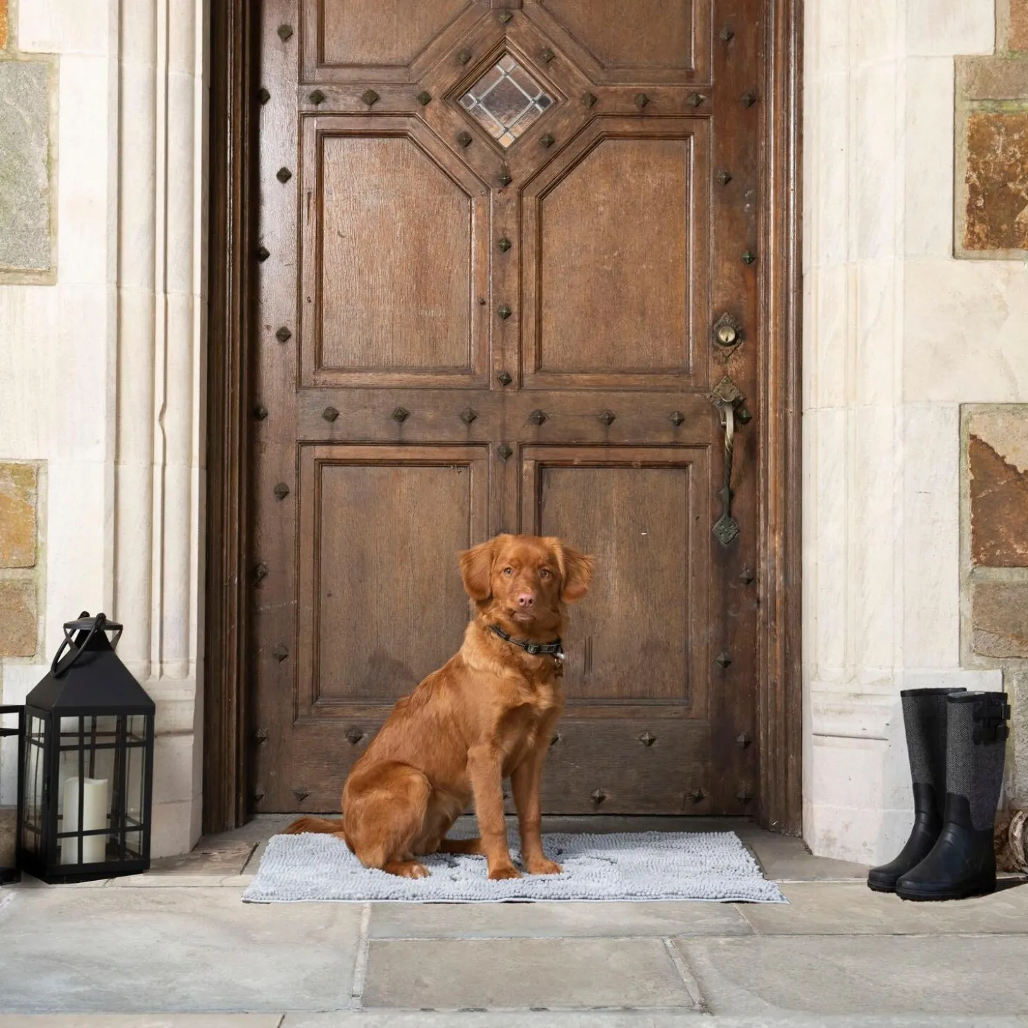 The Dirty Dog Doormat in Silver Grey by Dog Gone Smart magically soaks up water, dirt, and mud so the mess stays in the mat keeping your floors clean and dry!