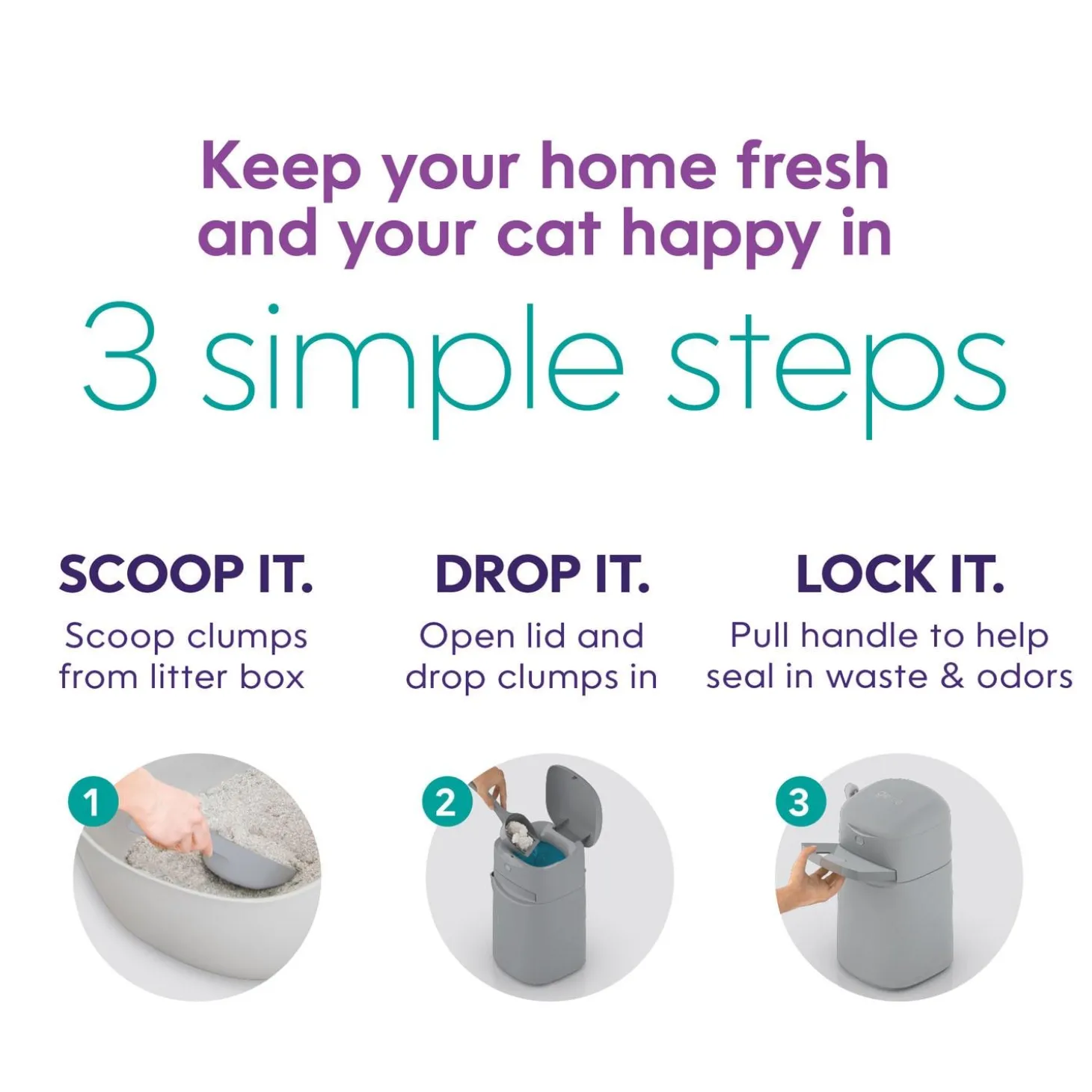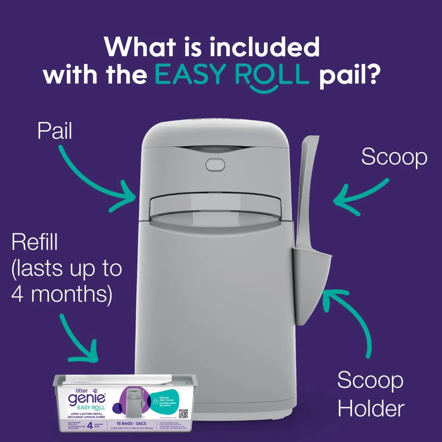 Litter Genie Easy Roll Pail is a disposal system that offers an easy solution providing convenience and ultimate odor control so you don’t have to worry about your home smelling like cat litter. Our refill bags are made from multi-layer film with odor-locking barrier technology.