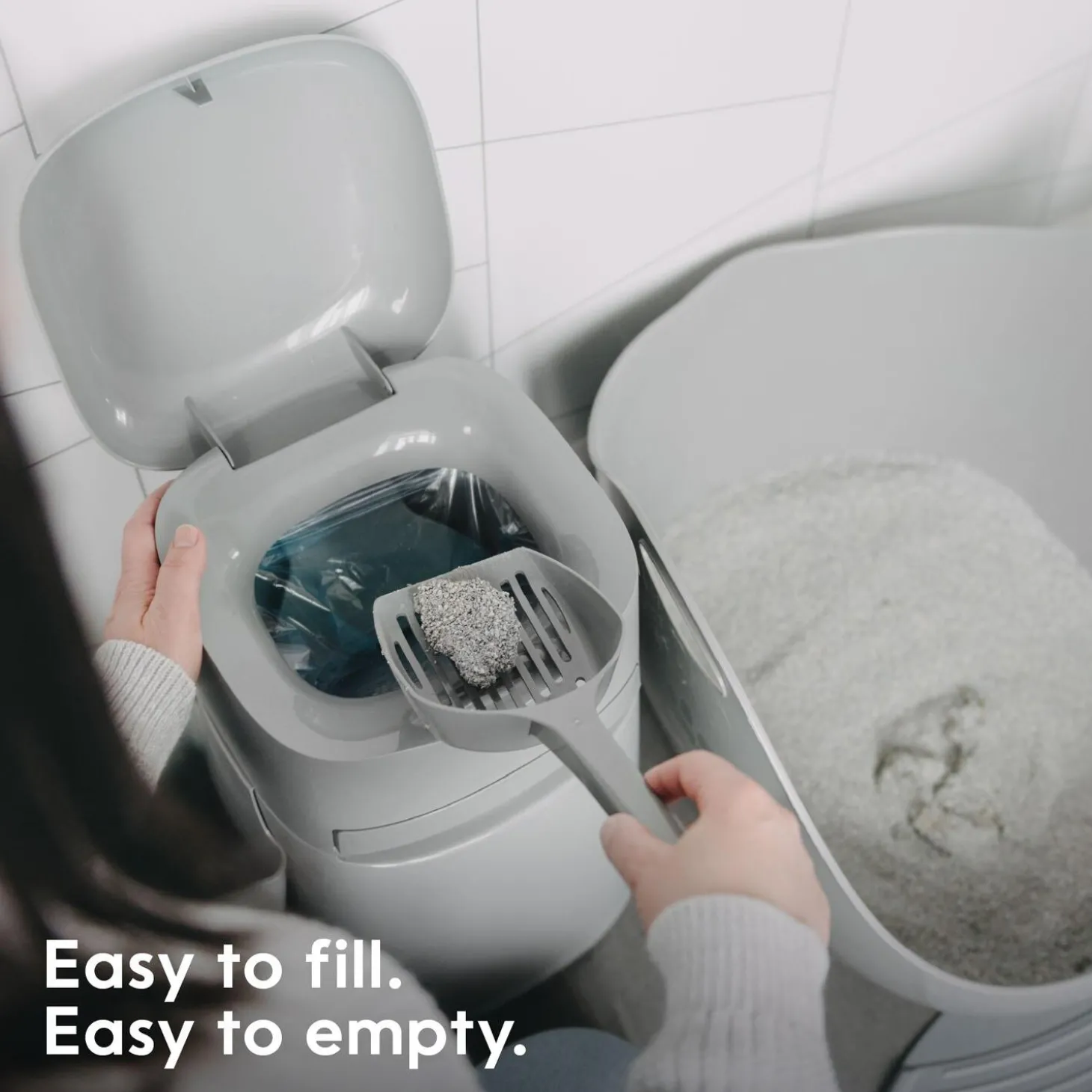 - The Easy Roll Pail can hold up to 8 days of soiled cat litter, for one cat, completely smell-free