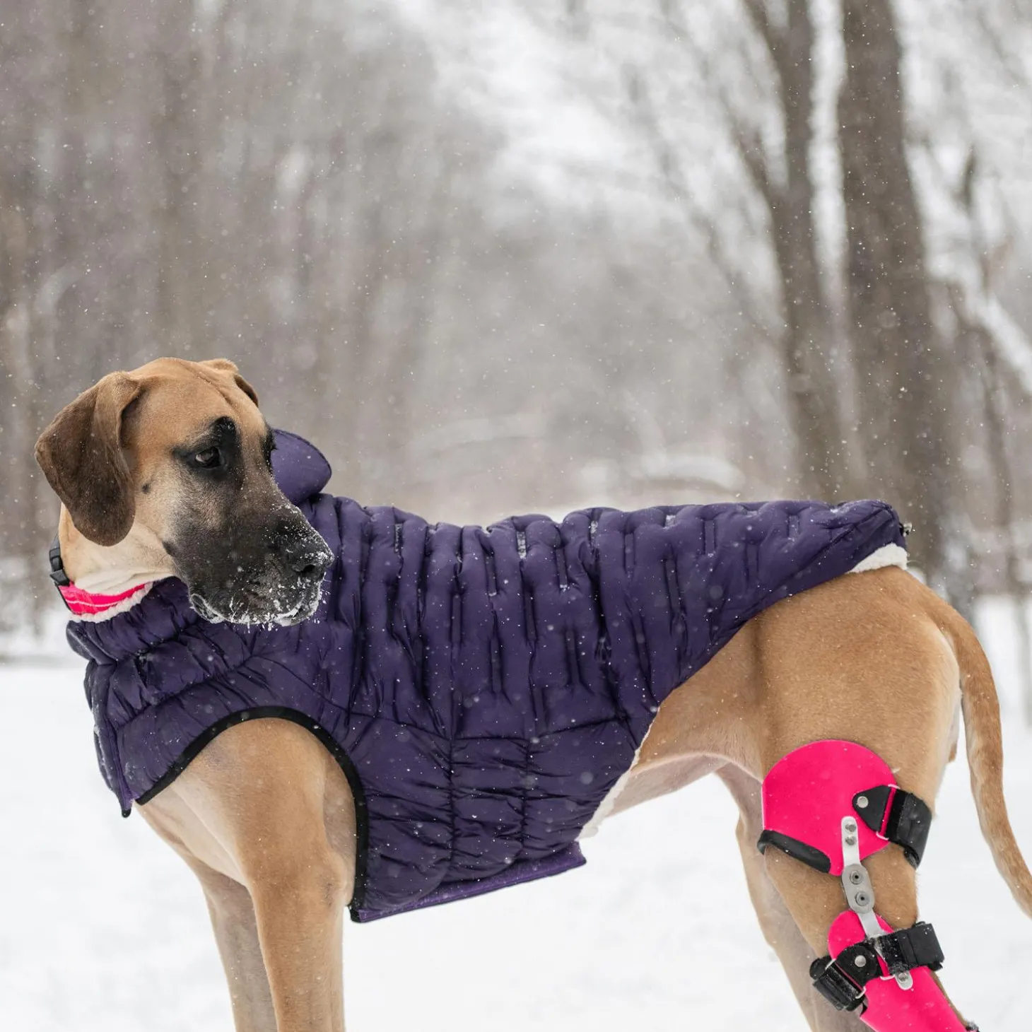 Direction: Simply lay the coat on your dog’s back and attach the hook and loop fastener around the neck and chest. Quick and easy, with no more leg lifting!