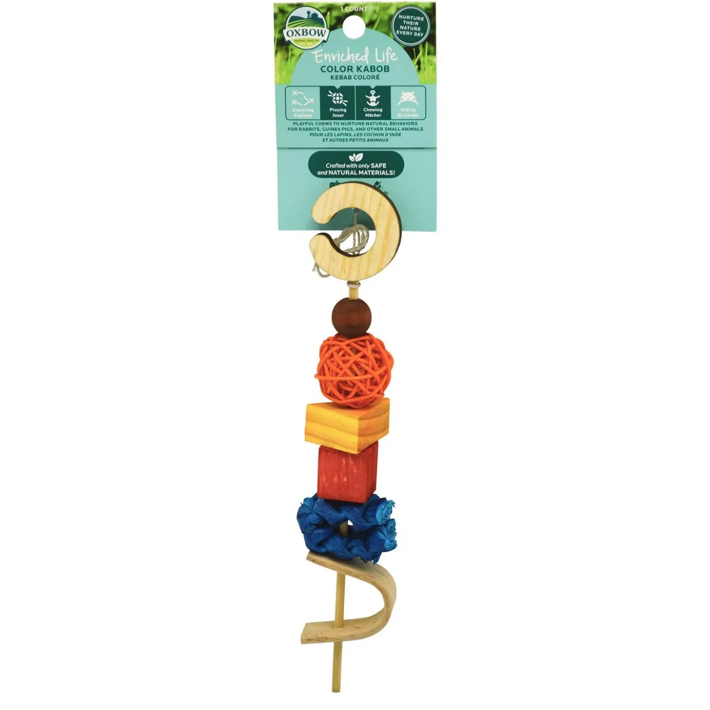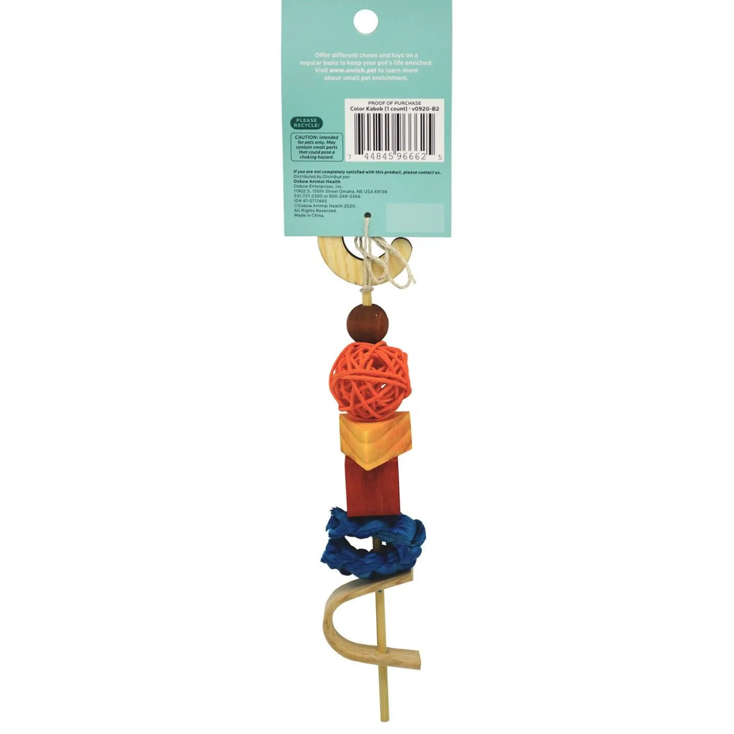Oxbow Enriched Life colour Kabob Small Animal Toy will enrich your pet’s daily life by supporting their natural behaviours. Engage your pet and provide mental enrichment, with this fun toy! Made using a variety of wood material and textures, this toy promotes essential chewing behaviours that supports dental health! Treat your pet with this untreated wood toy that supports your pets instinctual playing, chewing and exploring habits.