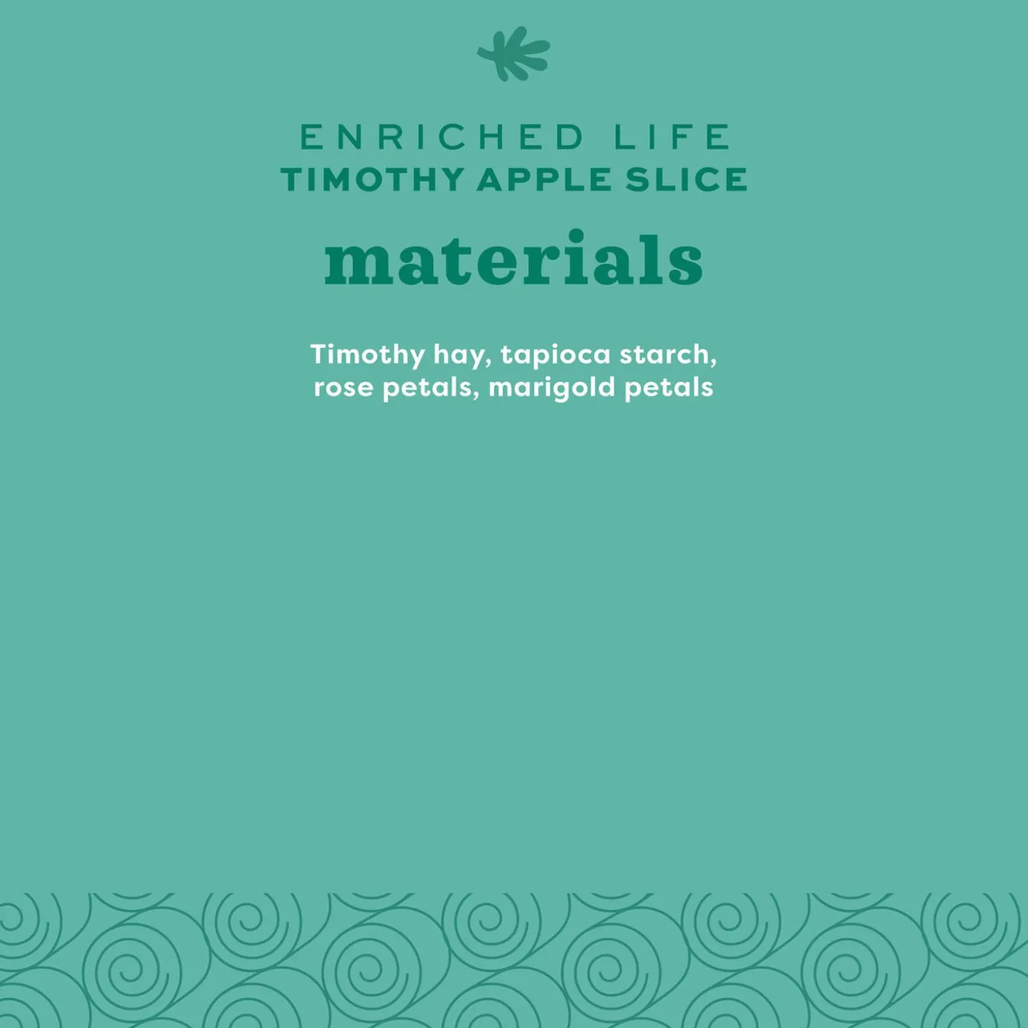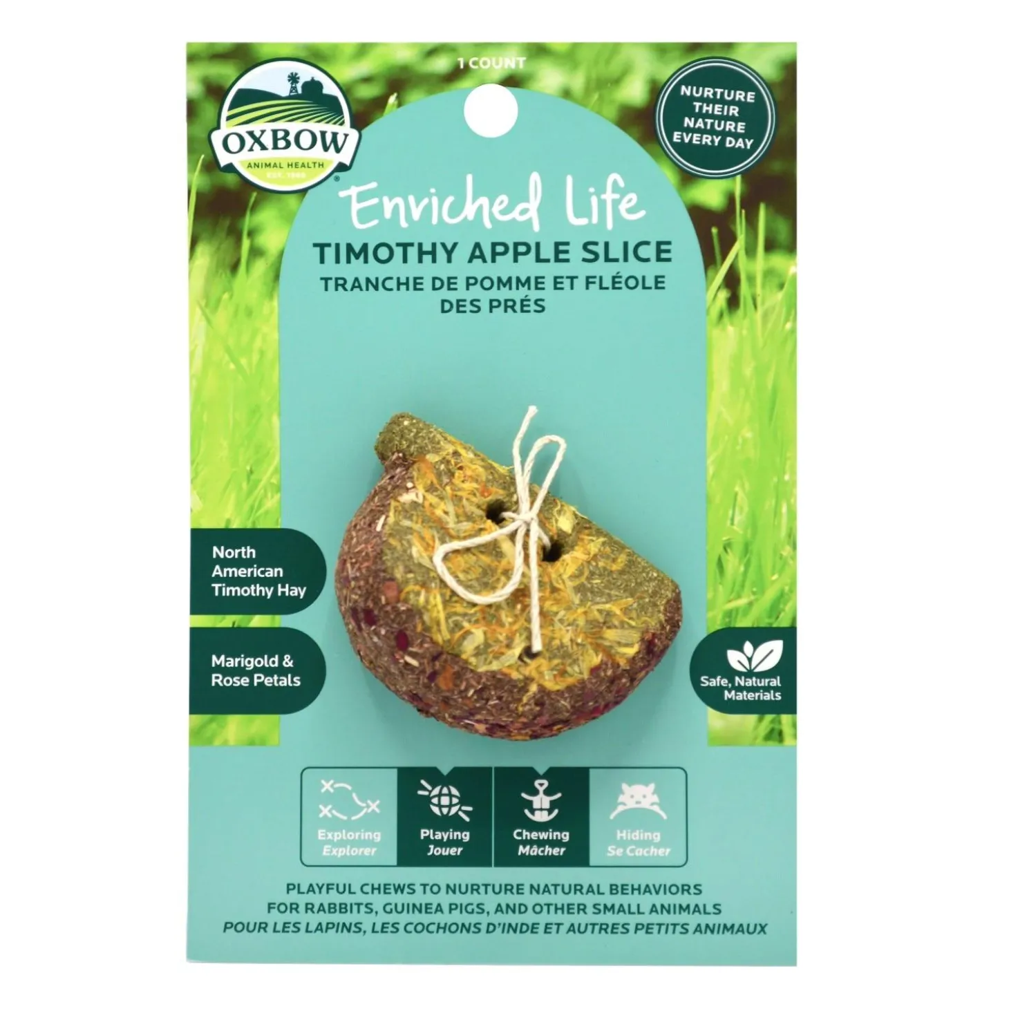 Oxbow Enriched Life Timothy Apple Slice is designed with your small pet’s natural behaviours in mind and is constructed from 100% pet-safe materials, allowing you to nurture your pet’s mind and body is safe and fun ways every day.