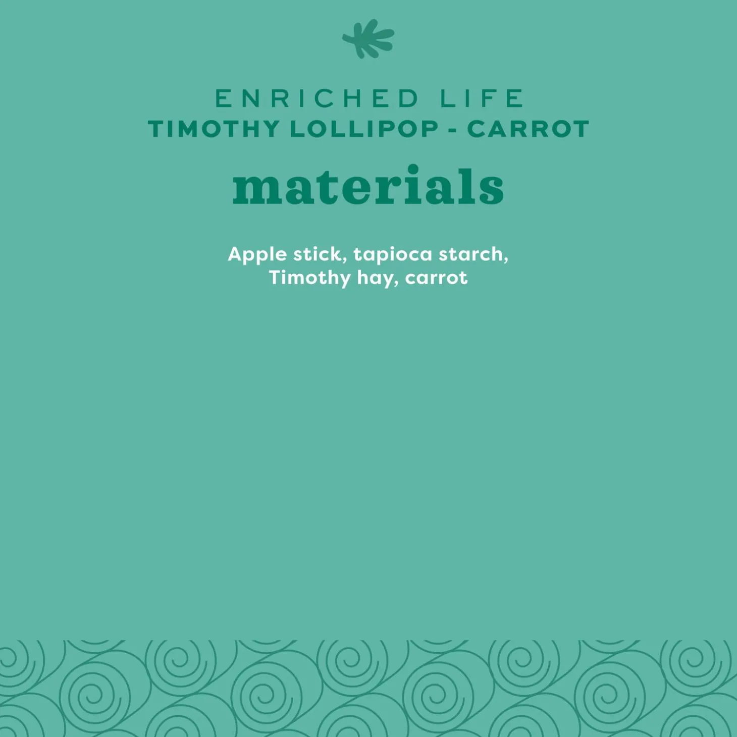 - Materials: Apple stick, Tapioca starch, Timothy hay, Carrot