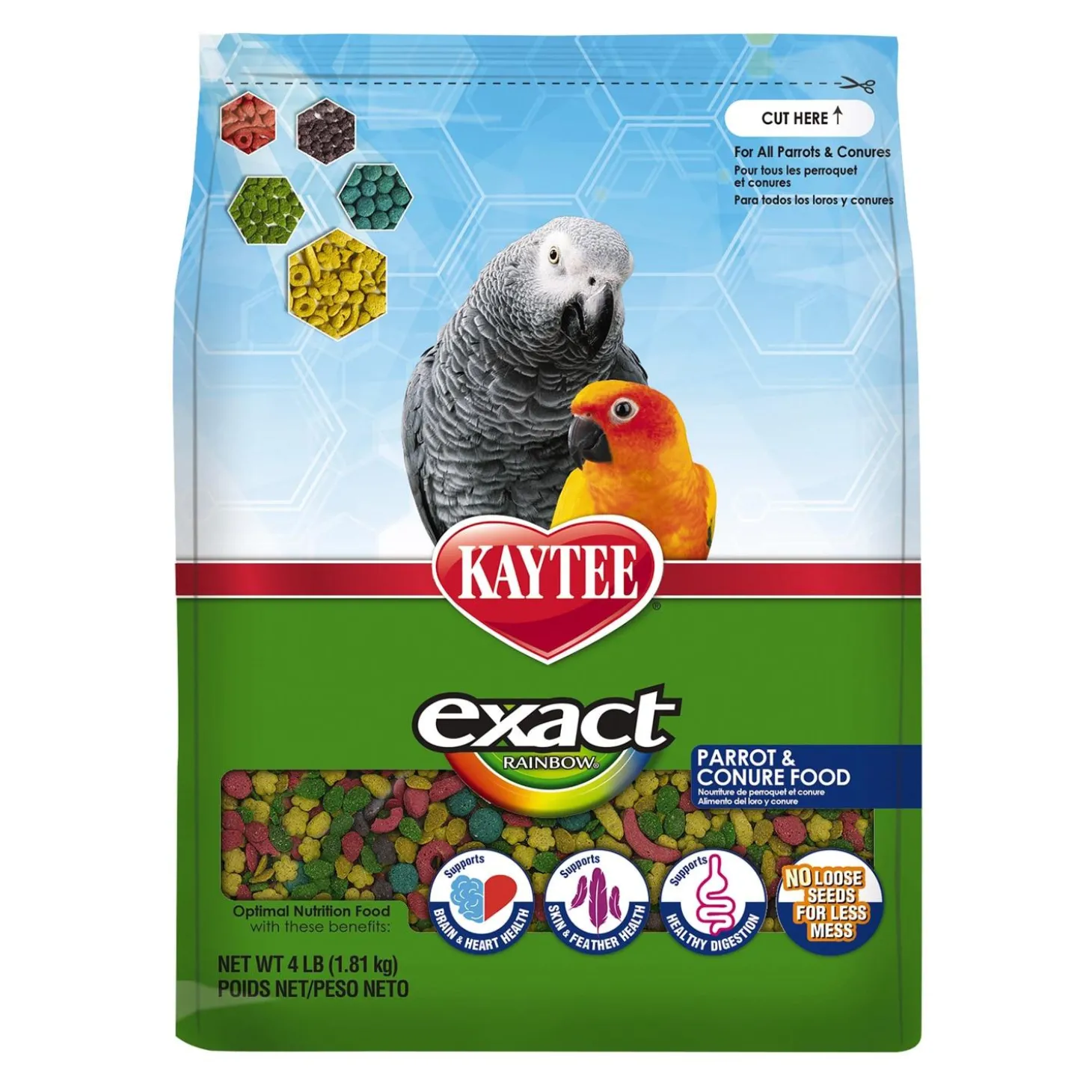 Kaytee Exact Rainbow Parrot & Conure Food is a premium extruded food and has been the recognized nutritional leader by avian nutritionists, veterinarians and breeders since its introduction over 25 years ago. Each nugget contains exact nutrition ensuring your bird gets exactly the right nutrition to produce better feathering, brighter colours and maintain excellent health. exact Rainbow is 100% consumable with no seed hulls or shells for less mess.