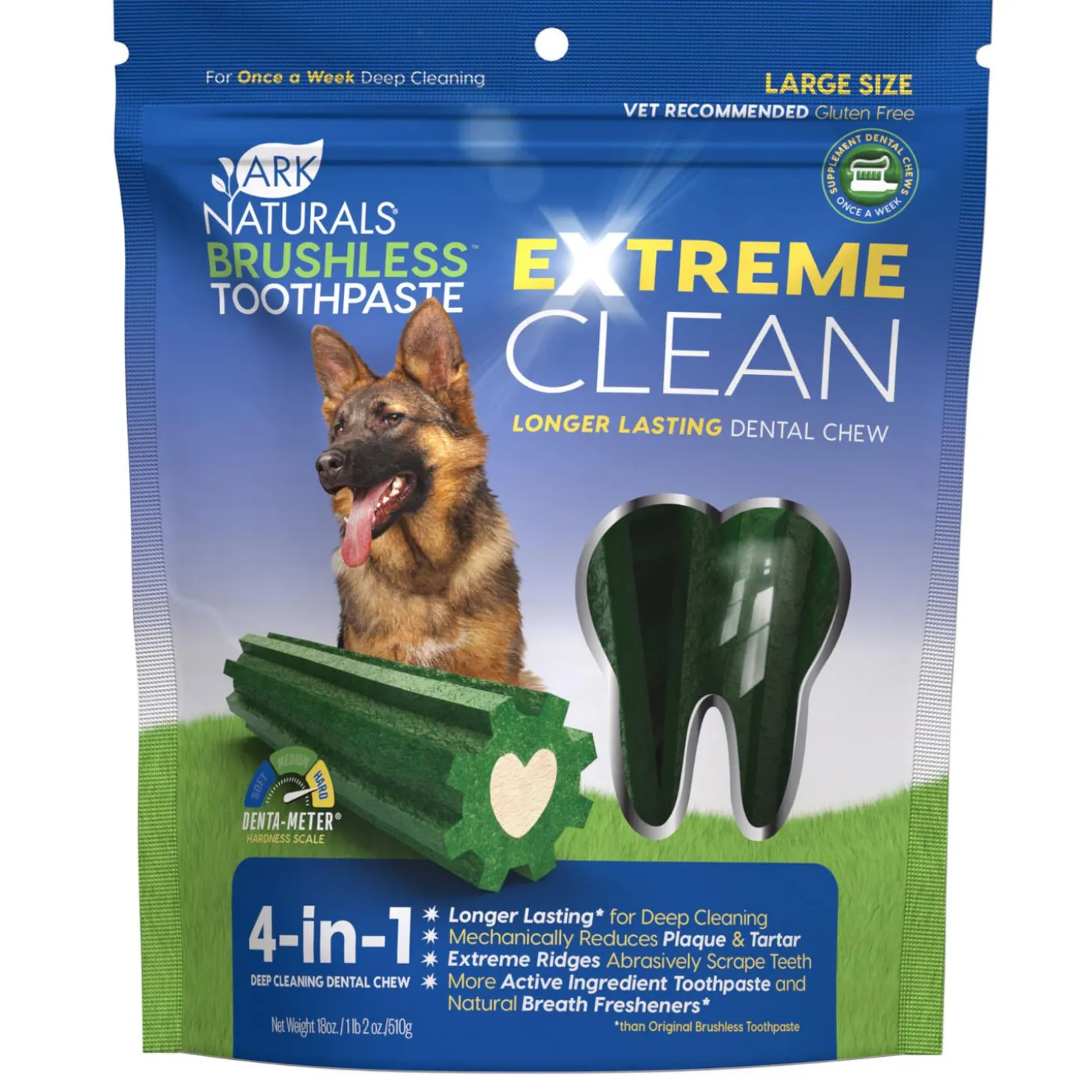 - 4-in-1 treat: Longer lasting for deep cleaning, mechanically reduces plaque and tartar, extreme ridges abrasively scrape teeth, natural breath freshener