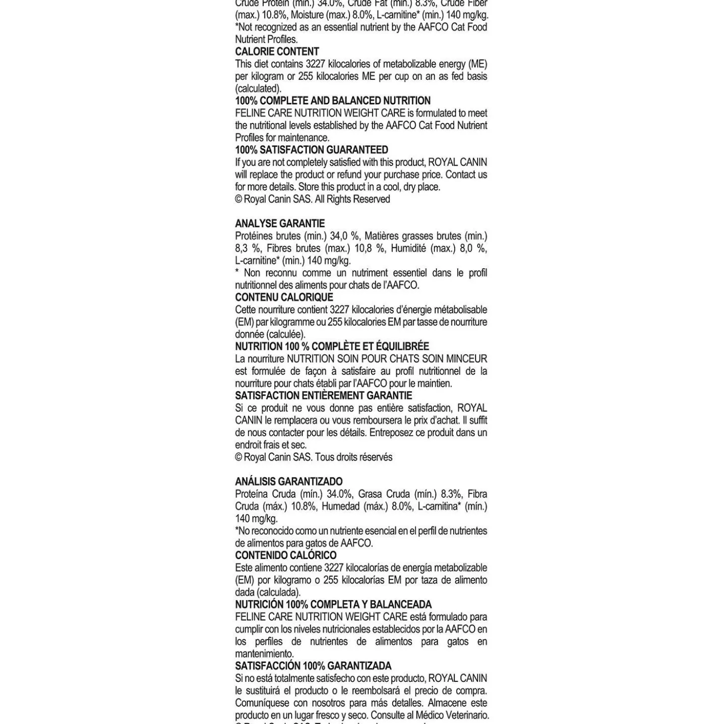 - FOR SLIGHTLY OVERWEIGHT CATS: Royal Canin Feline Health Nutrition Weight Care Adult Cat Food delivers complete and balanced nutrition for adult cats that have a tendency to gain weight or need to lose a little bit of weight