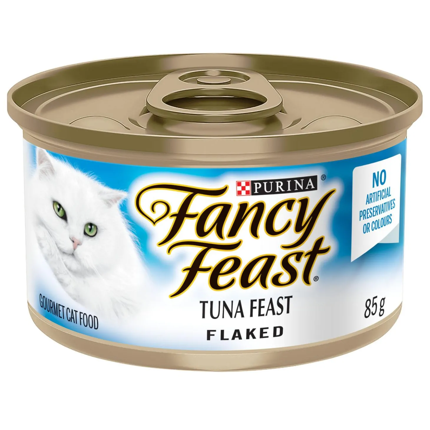Fancy Feast Flaked Tuna Feast Adult Cat Food contains tender, savoury flaked pieces of tuna.