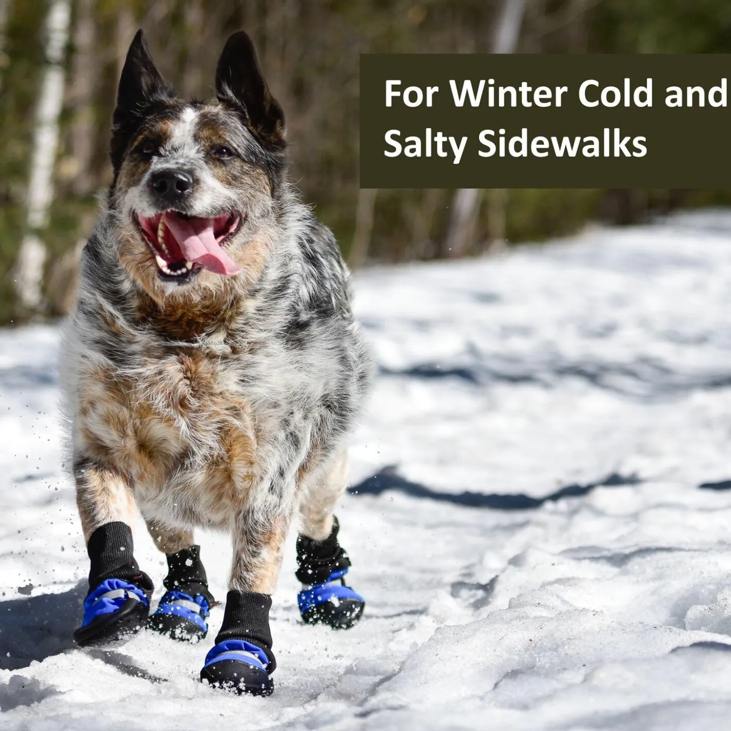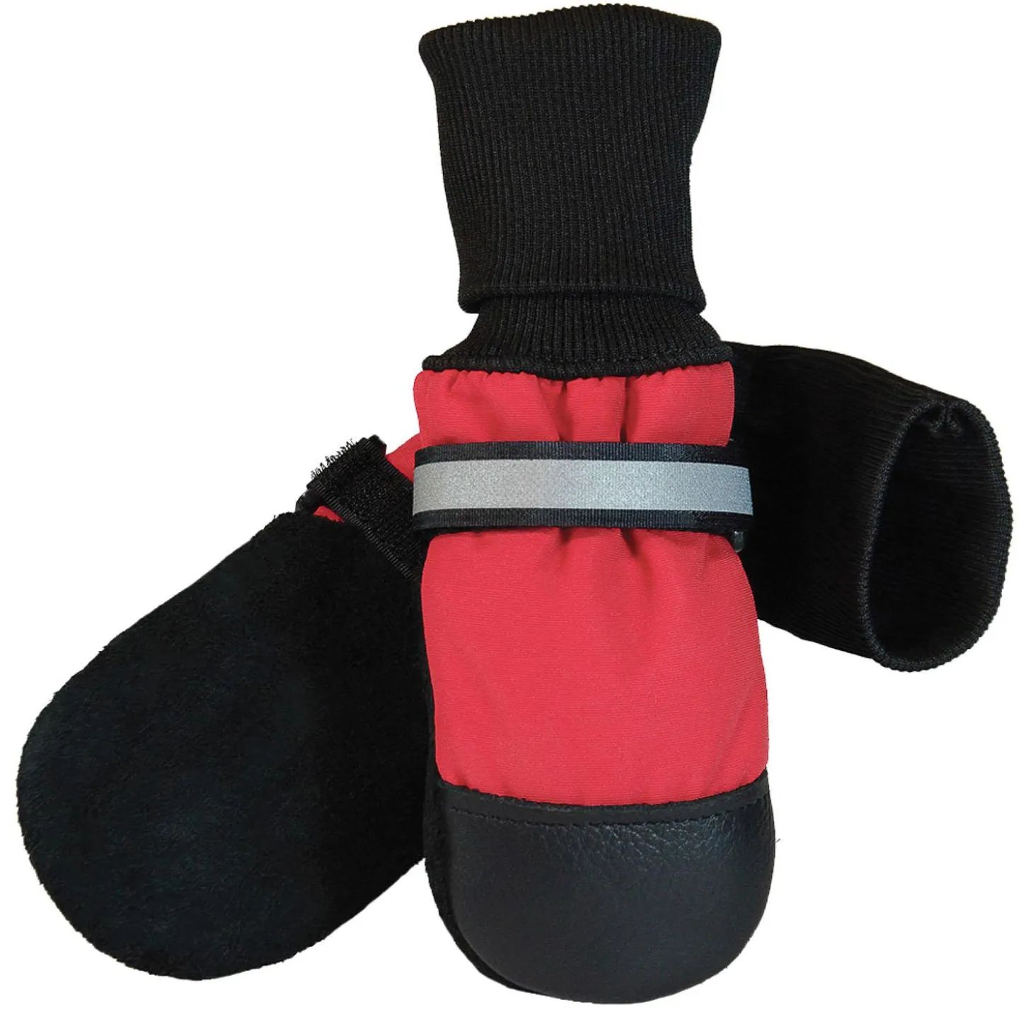 Protect your pet’s paws with Muttluks featuring a fleece inner lining and leather soles and toe protection (leather toe protection sizes M-XXL only). Boots have self-tightening reflective straps, which allows for quick, easy, secure fastening. Comfortable stretchy leg cuff can be rolled up or down for short or long lengths. Machine washable. Sold as a set of four. Proudly designed and made in Canada.
