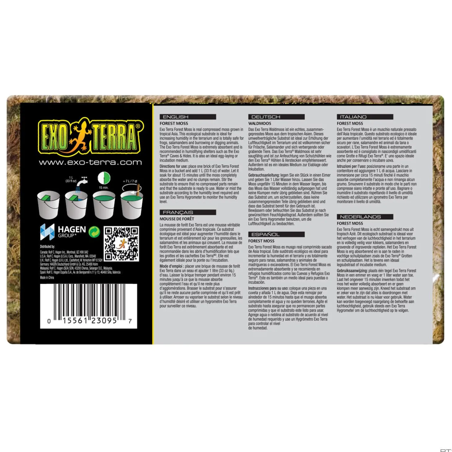 Exo Terra Forest Moss is real compressed moss grown in tropical Asia. This ecological substrate is ideal for increasing humidity in the terrarium and is totally safe for frogs, salamanders and burrowing or digging animals. The Exo Terra Forest Moss is extremely absorbent and is recommended in humidifying shelters. It is also an ideal egg-laying or incubation medium.