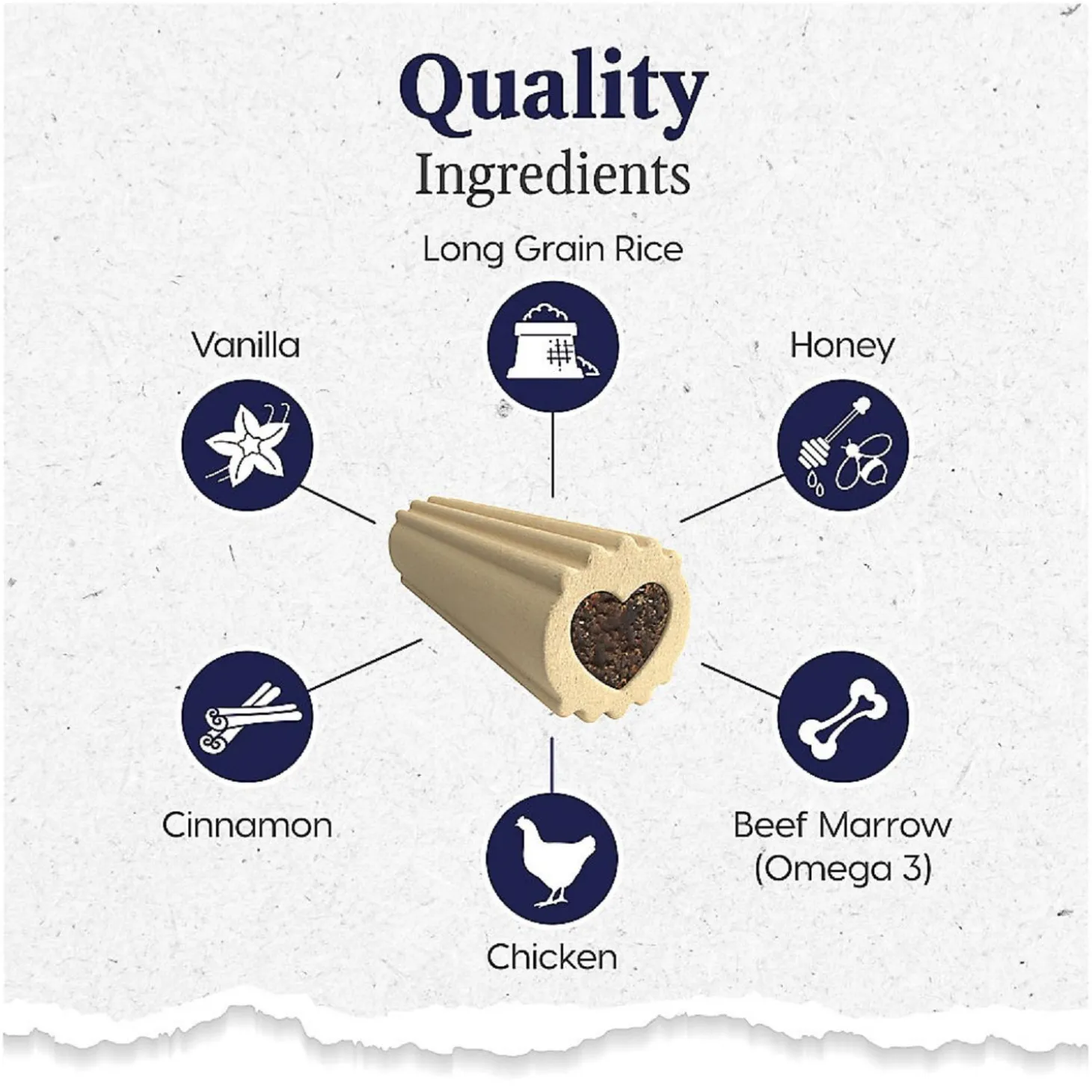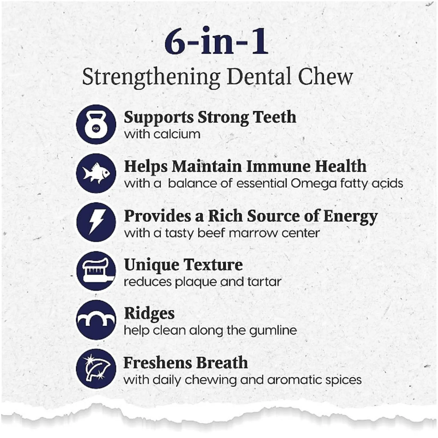 Ark Naturals Fortify Brushless Toothpaste Small Dog Treats have an advanced 6-in-1 formula that has all the same benefits of the original Brushless Toothpaste, plus calcium to help support strong teeth and both Omega 3’s and Omega 6’s to support immunity. Their unique texture helps reduce plaque, tartar, and helps clean along the gumline as your dog chews. Plus – they have a chewy beef marrow toothpaste center that polishes teeth and tastes great. Ranked Medium on the Dental-Meter, they are perfect for your everyday chewers!
