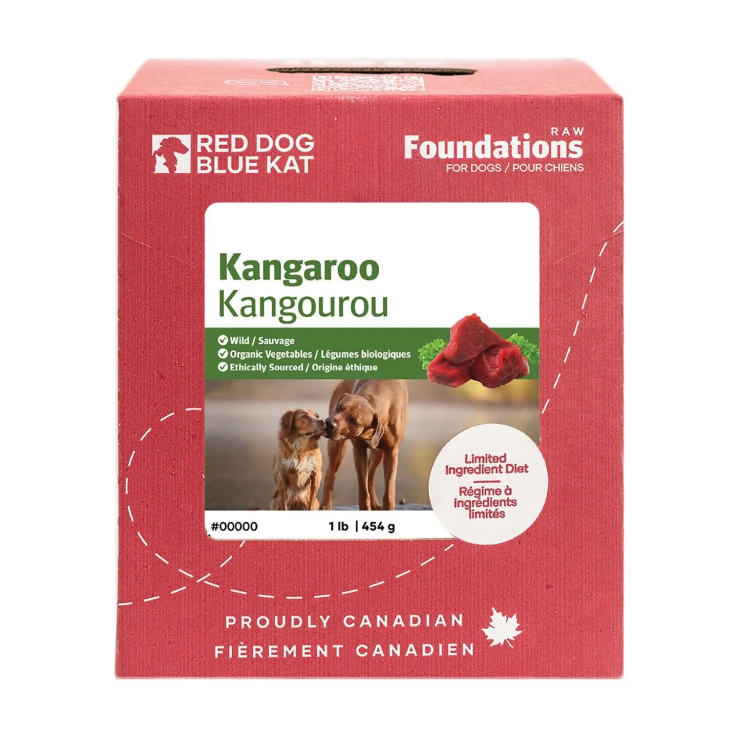 Red Dog Blue Kat Foundations Kangaroo 4 Pack Adult Dog Food is made from wild Australian kangaroo meat, lamb organs and organic vegetables. The leanest and most exotic of all Red Dog Blue Kat meals, it is great for dogs with allergies or food sensitivities. Kangaroo is also the leanest of meats, so it’s especially good for dogs that need to shed a few pounds. This food is naturally sourced so it never contains growth hormones or antibiotics. It is high in long-chain Omega-3 fatty acids and is extremely low in saturated fat. Like buffalo, kangaroo is a perfect meat source for any dog suffering from pancreatitis.